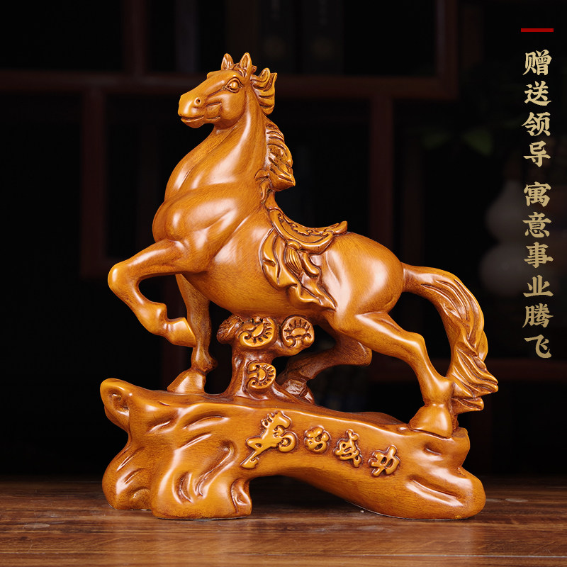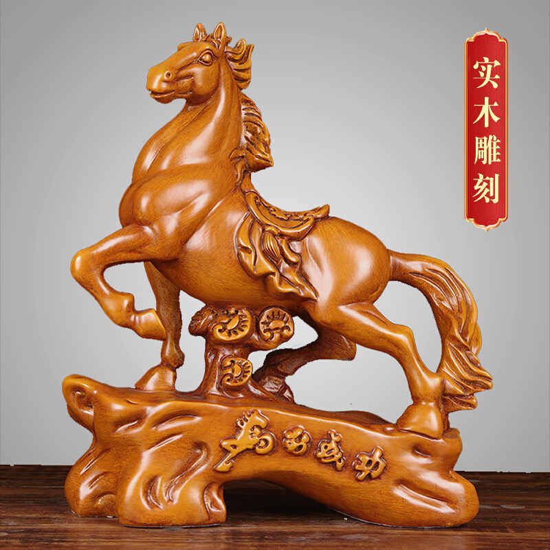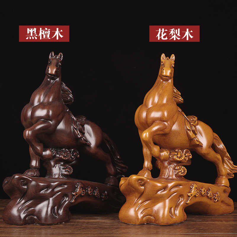 实木雕刻马到成功摆件家居客厅生肖马工艺品办公室书房乔迁装饰品