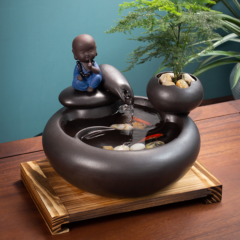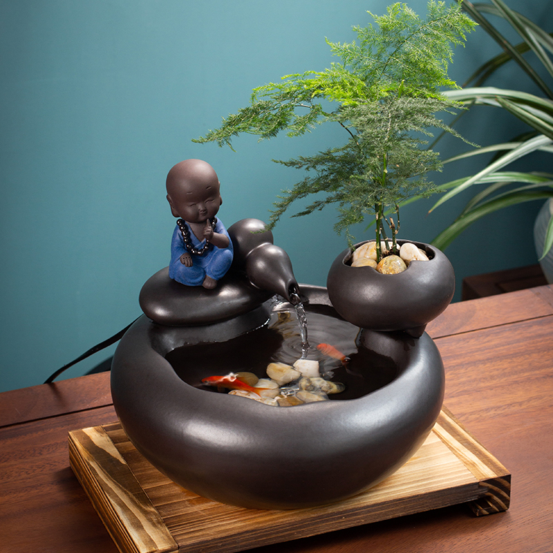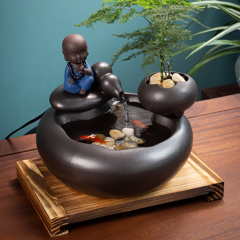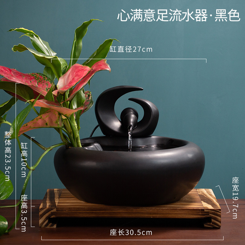 陶瓷流水器摆件灯圈桌面招财喷泉客厅办公室玄关盆栽循环水景鱼缸