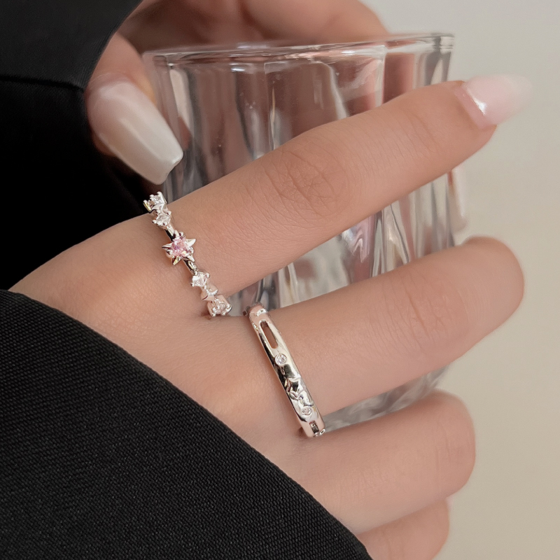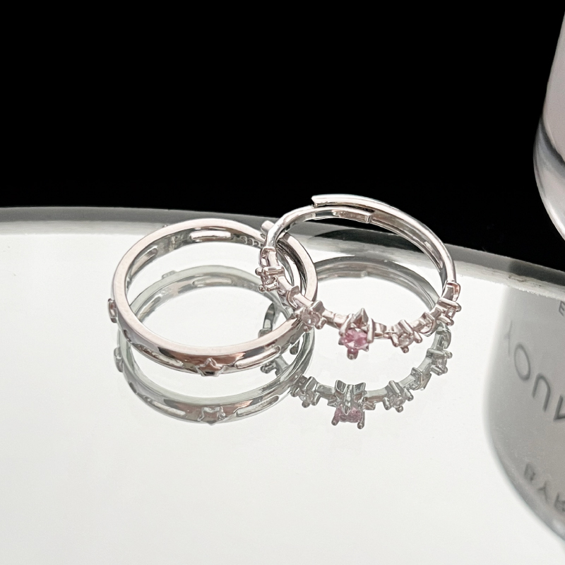 KANSAI粉色星星两件套情侣款戒指男女精致对戒食指戒可调节手饰品