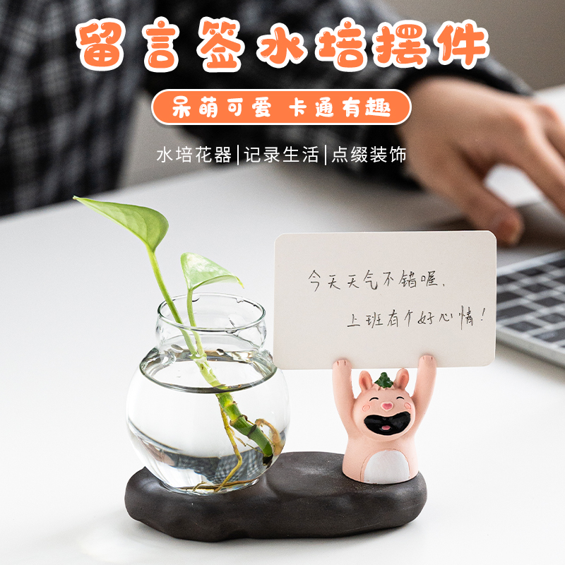 举牌小猪ins网红加油励志小摆件治愈系便签桌面水培摆件装饰花瓶