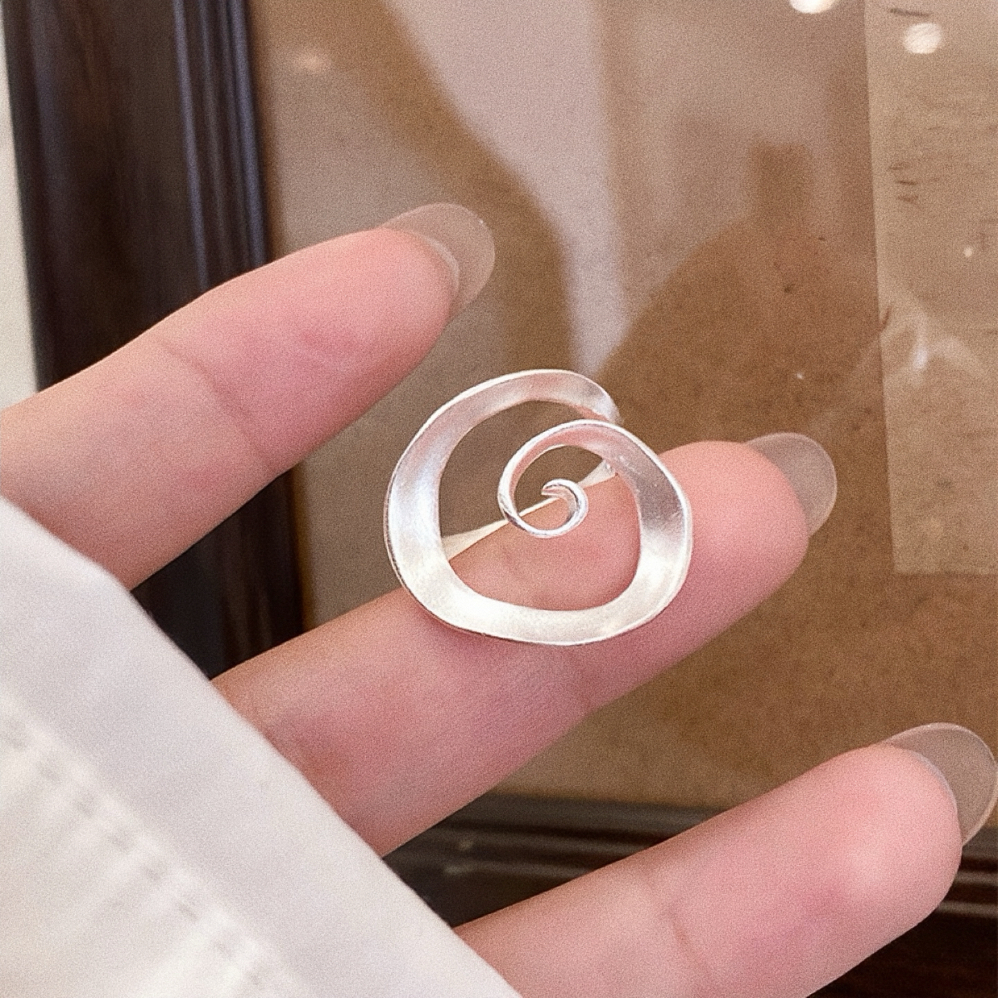 法式螺旋丝带戒指纯银开口可调节轻奢极简手工小众设计高级感饰品