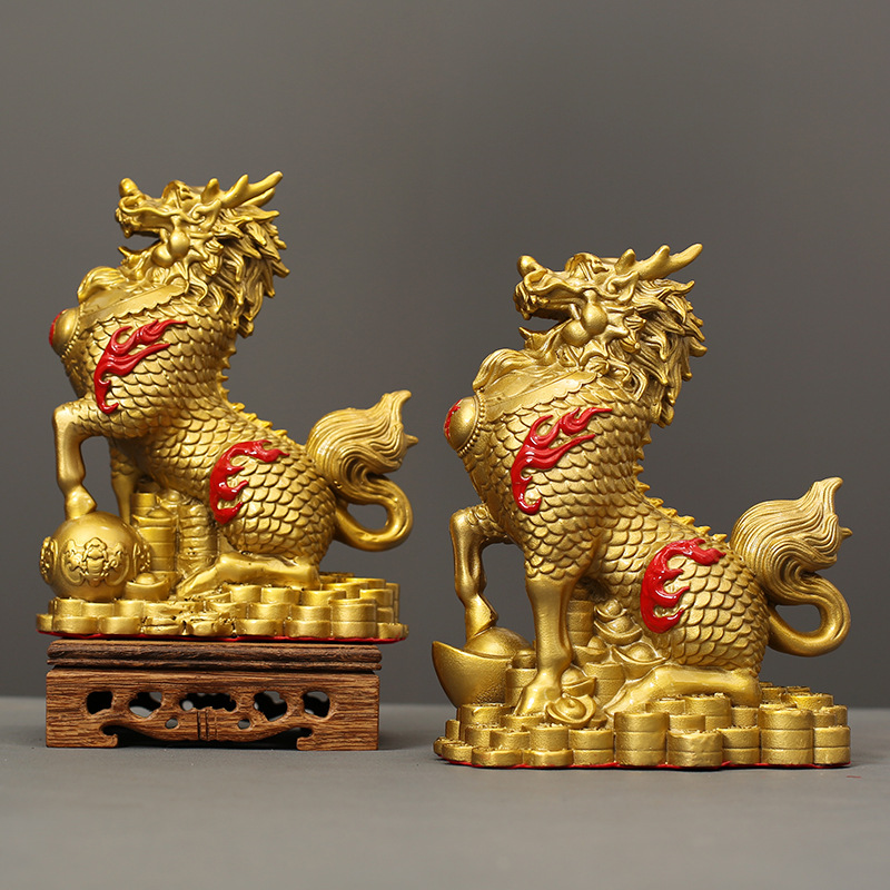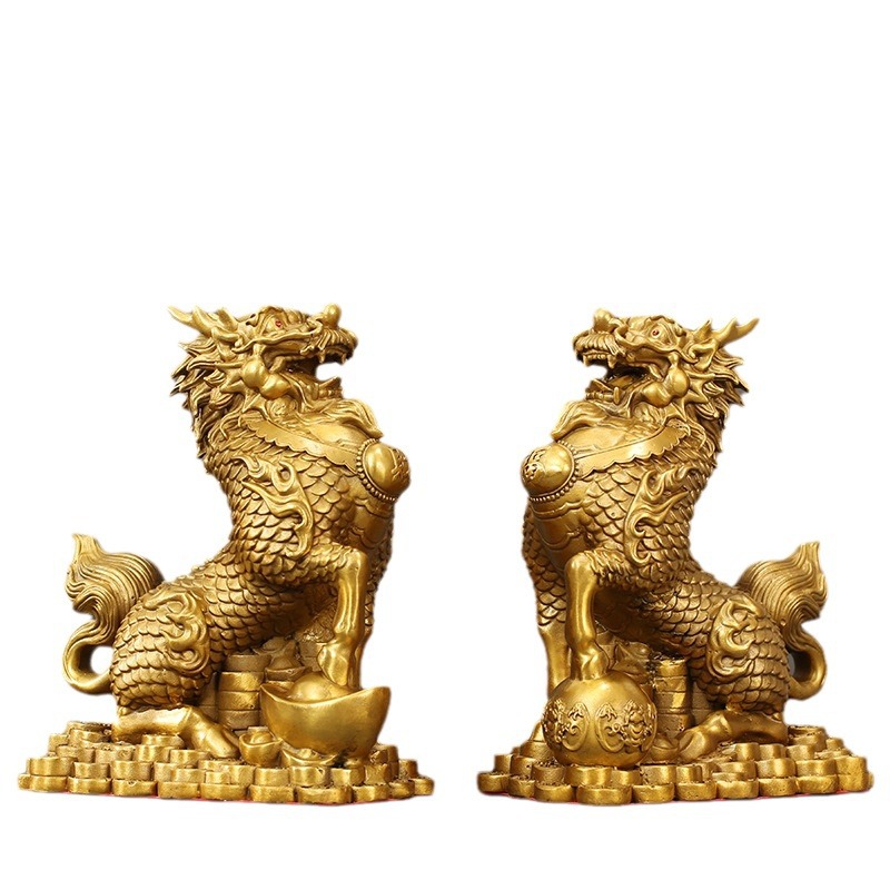 全铜招财麒麟摆件工艺品成对祥瑞麒麟客厅玄关摆放办公室桌面装饰