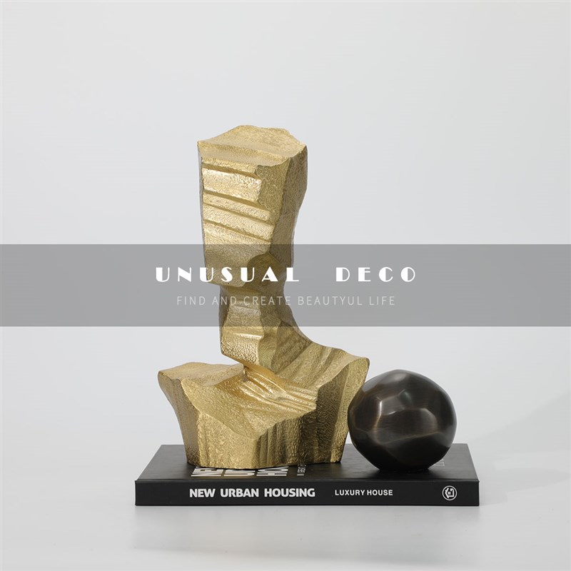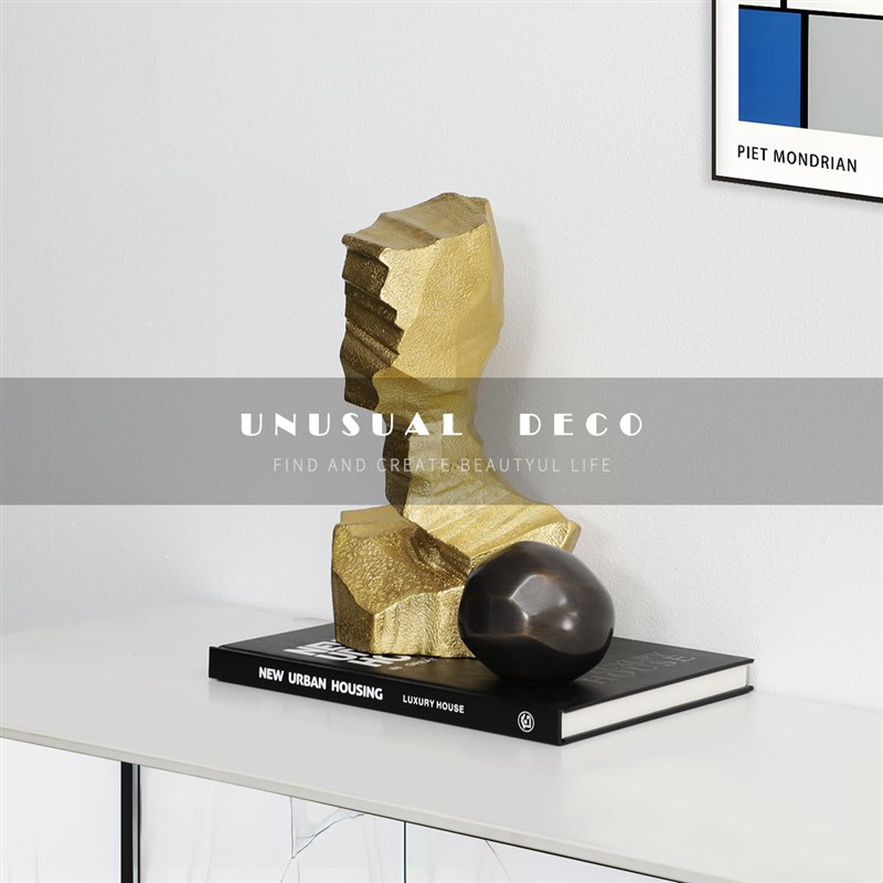 现代简约欧式样板间桌面书镇装饰品书房客厅金色黑色金属球摆件