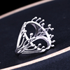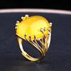 S925纯银戒指空托DIY女款戒指托镶嵌绿松石蜜蜡琥珀开口戒托15*20