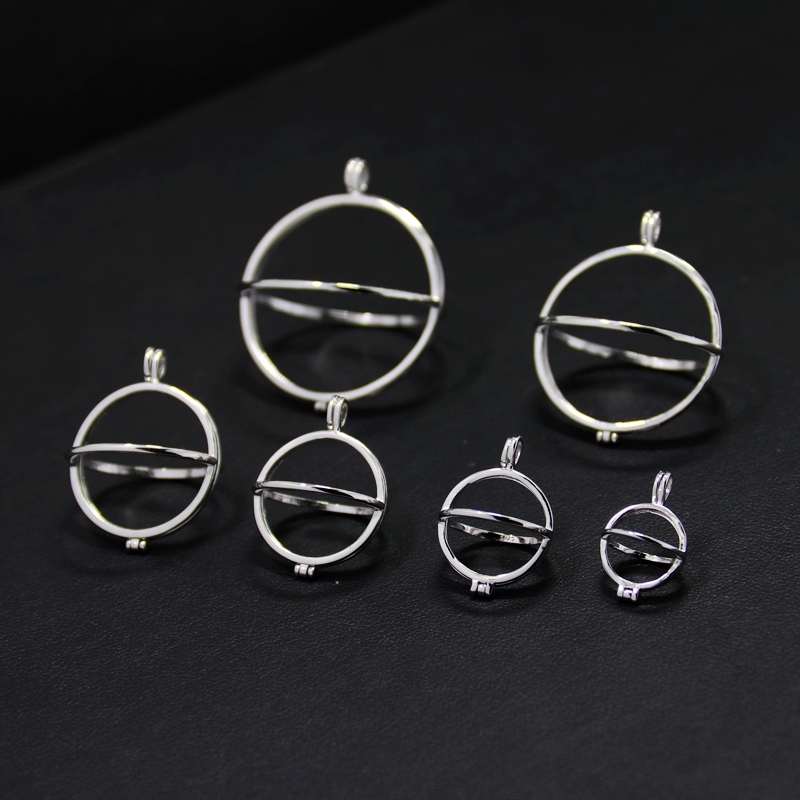 吊坠空托S925纯银圆珠免打孔沾胶球笼DIY蜜蜡松石珍珠玉石镶嵌托
