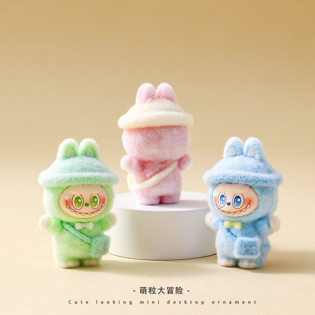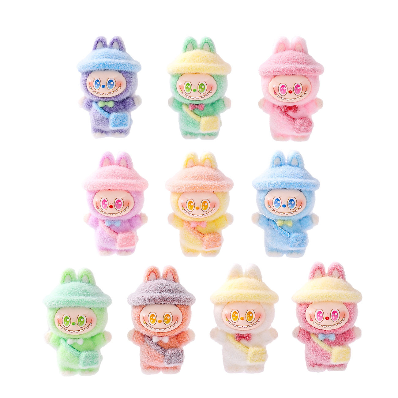 新款植绒挎包帽子小兔萌粒公仔潮玩盲盒配件办公室桌面小摆件批发