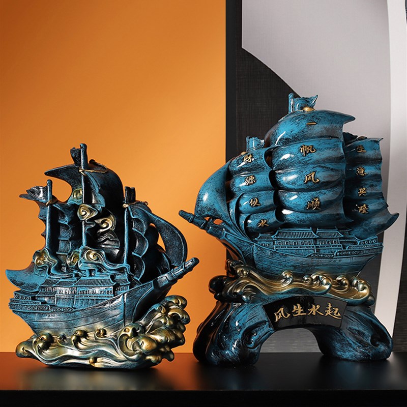 创意帆船摆件现代家居客厅酒柜电视柜装饰品办公室一帆风顺工艺品