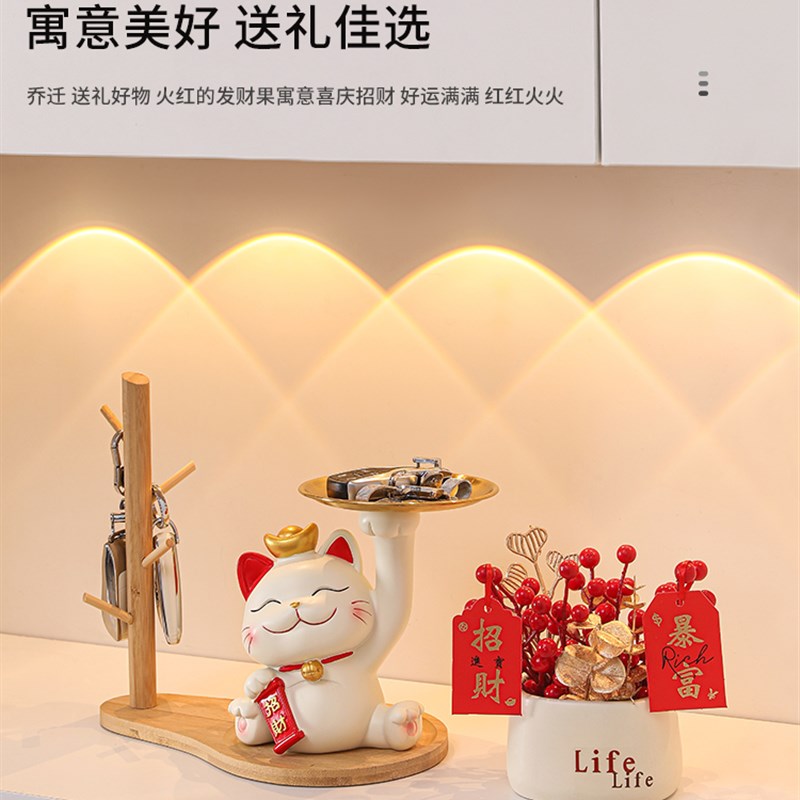 招财猫钥匙收纳玄关摆件入户门口鞋柜家居装饰品搬家乔迁新居礼物