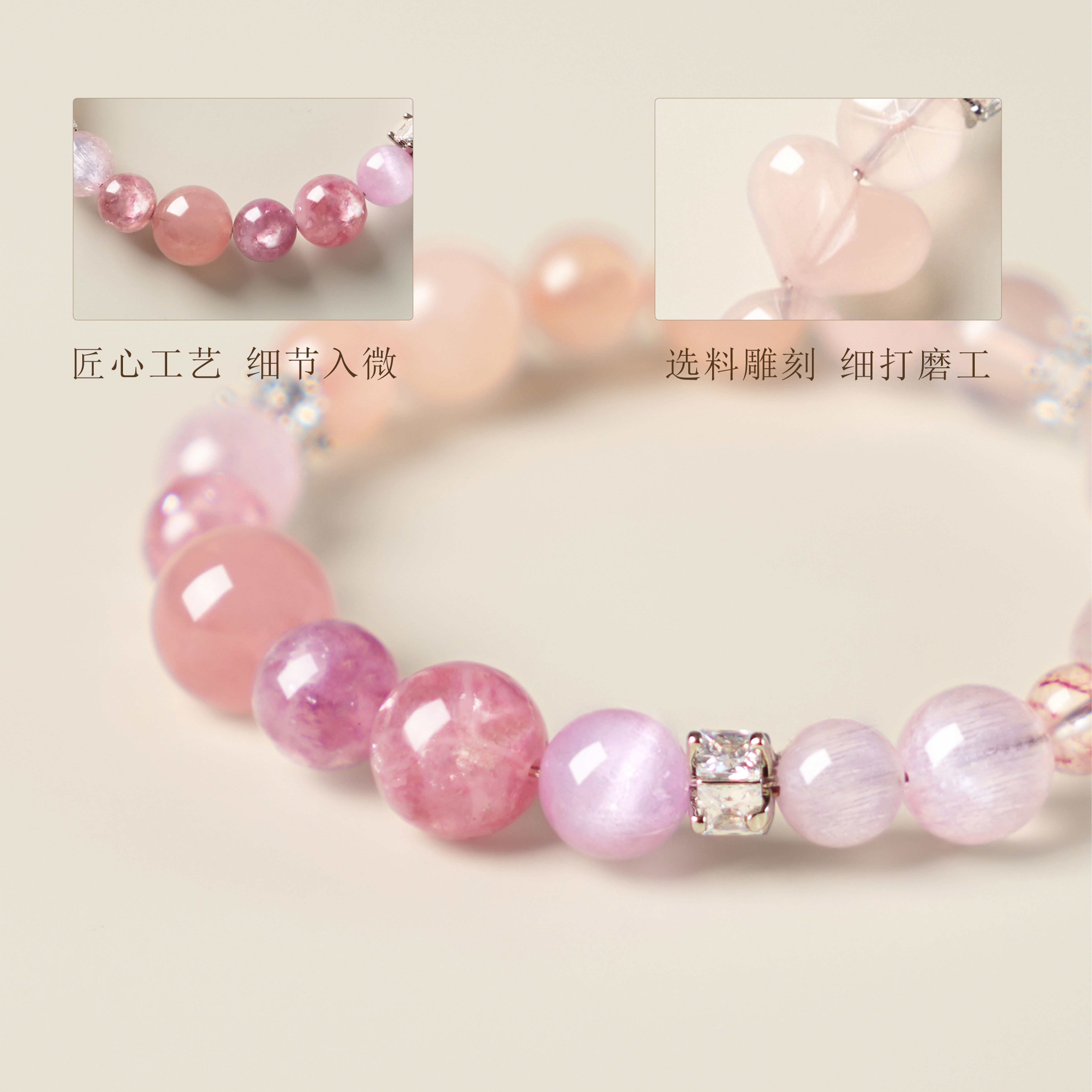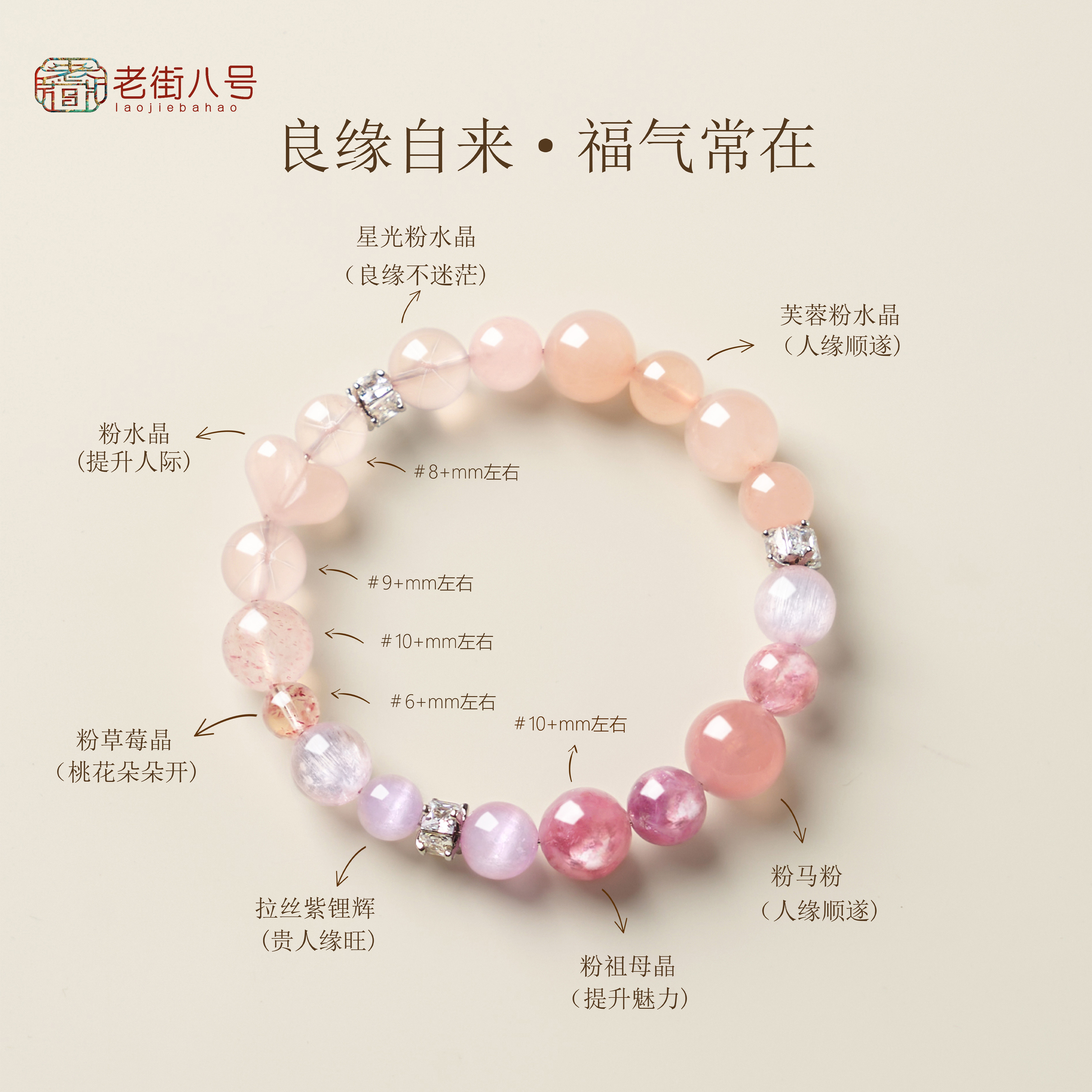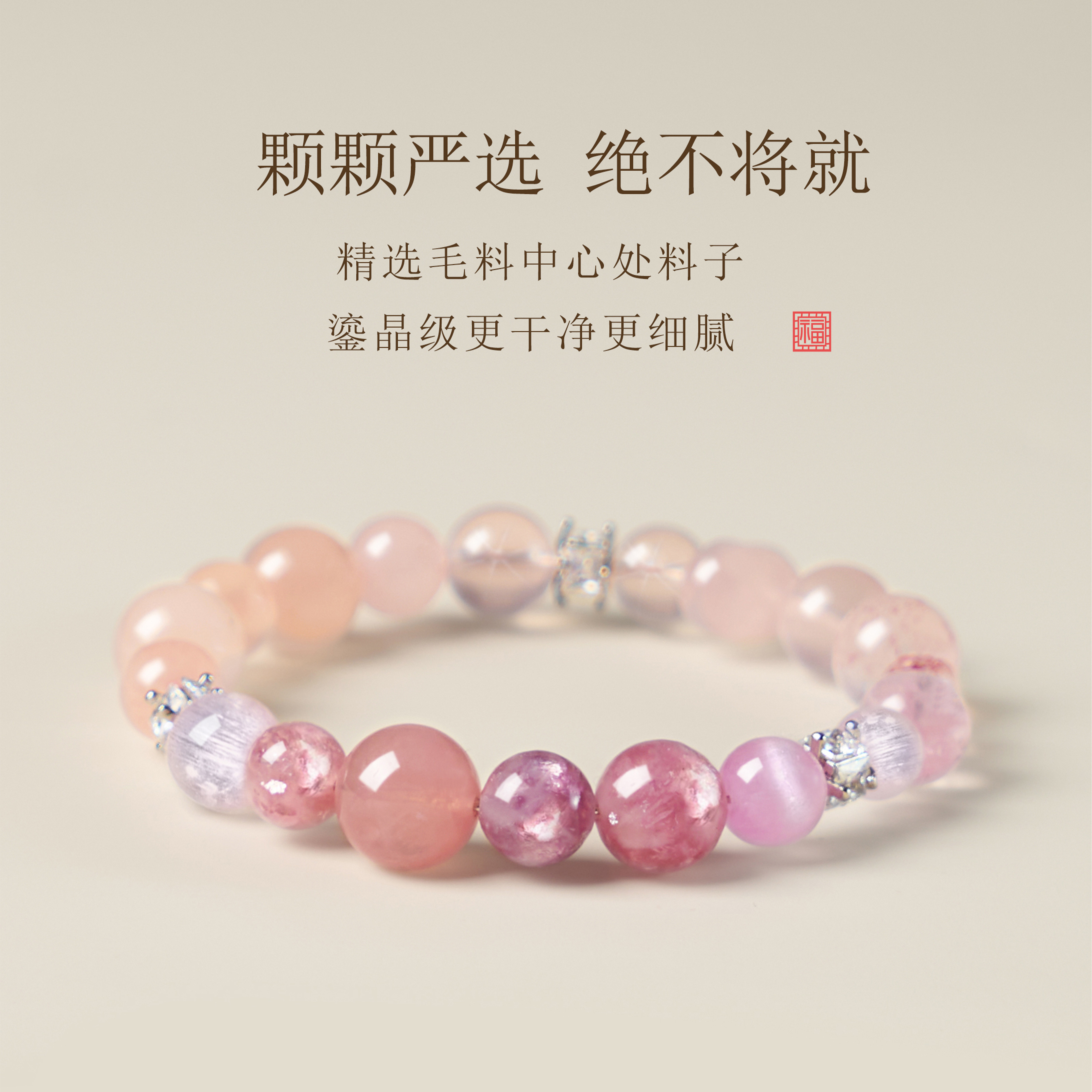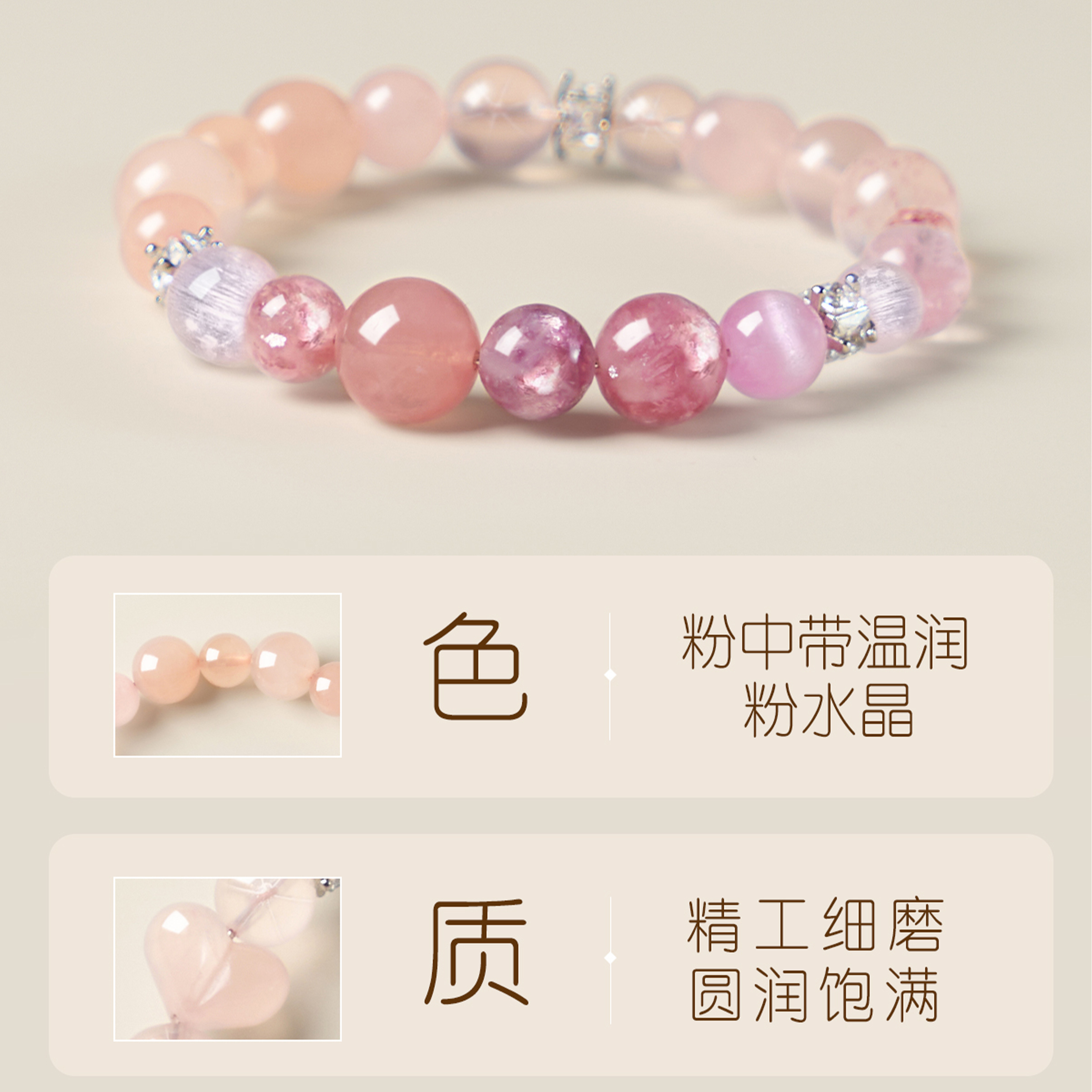 粉水晶粉晶聚福手串多喜多宝手链新中式火柔土纳福旺人缘