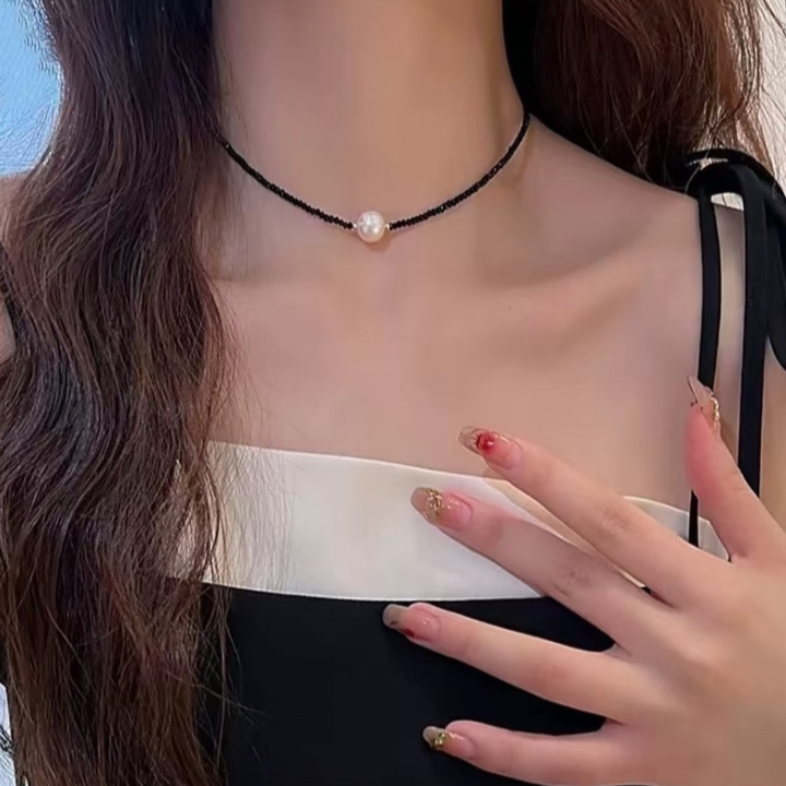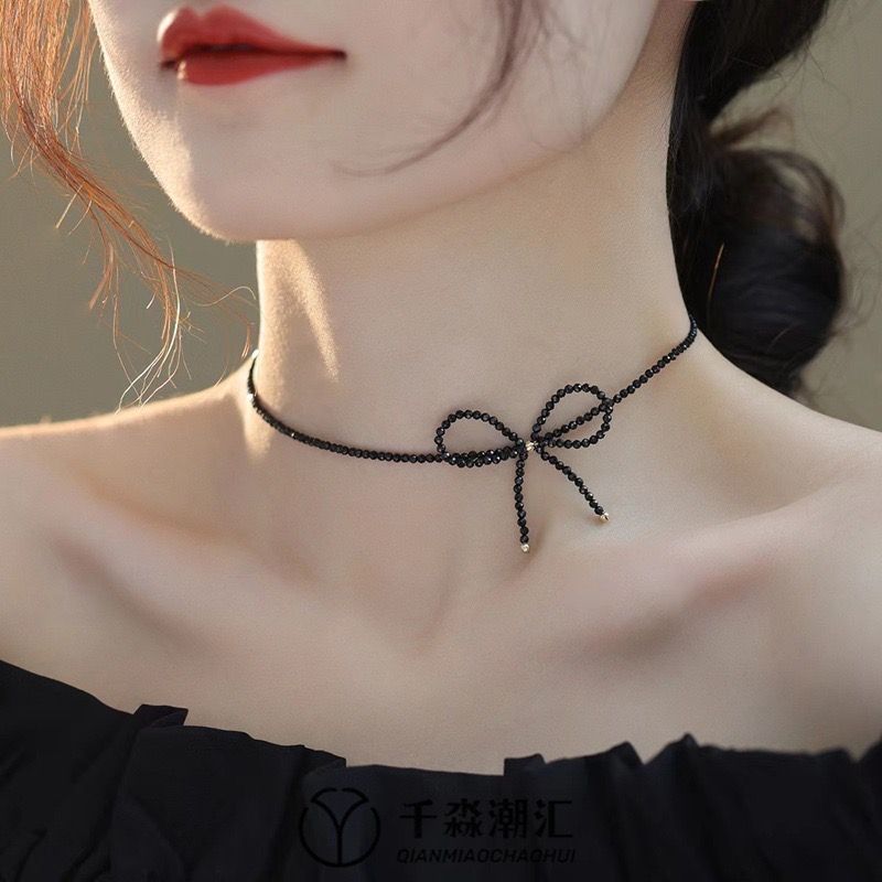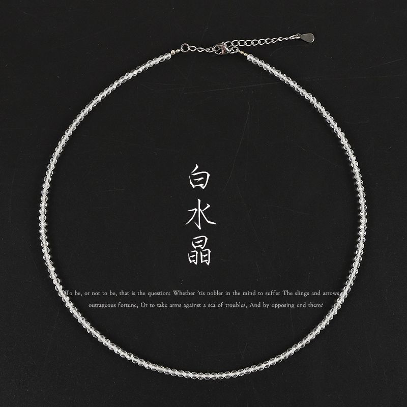 黑尖晶锁骨项链s925银配件白水晶宝石红爆彩小米珠刻面颈链女款