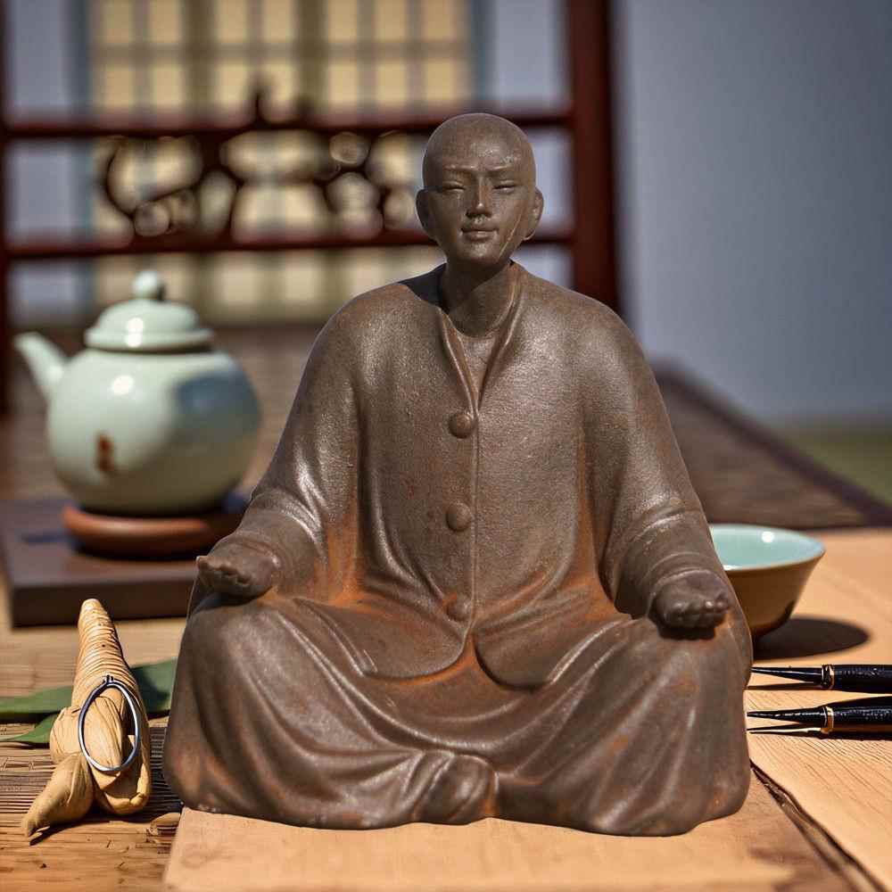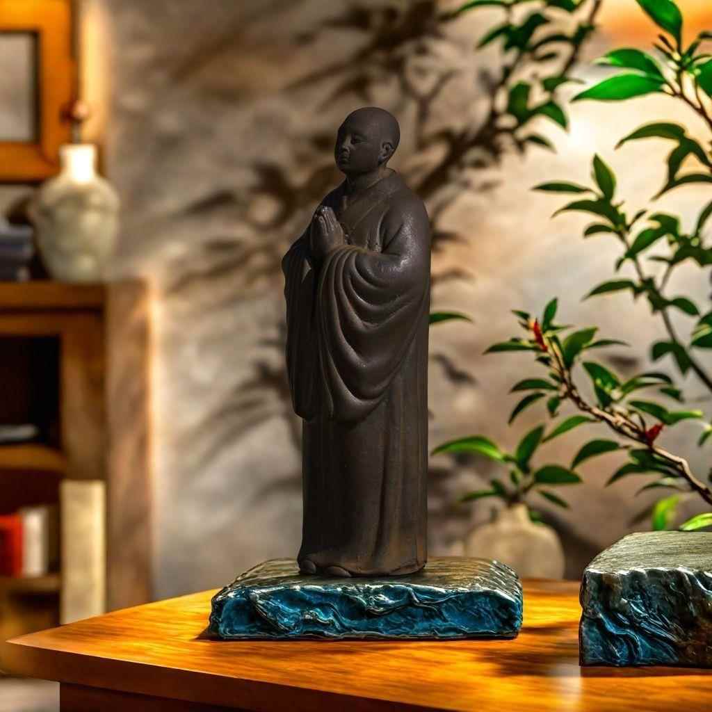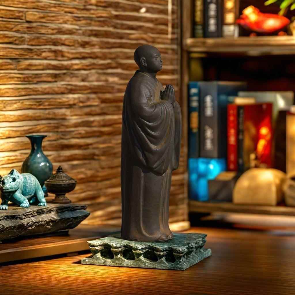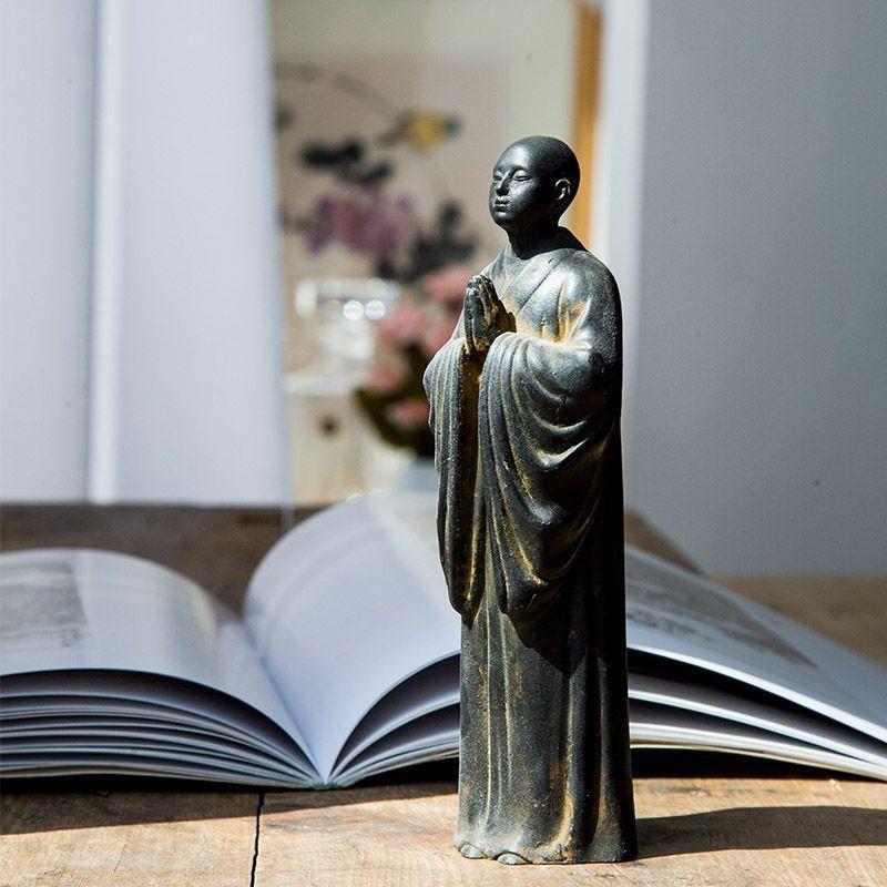 禅意中式双手合十僧侣小和尚阿弥陀佛桌面摆件纯手工仿铸铁工艺品
