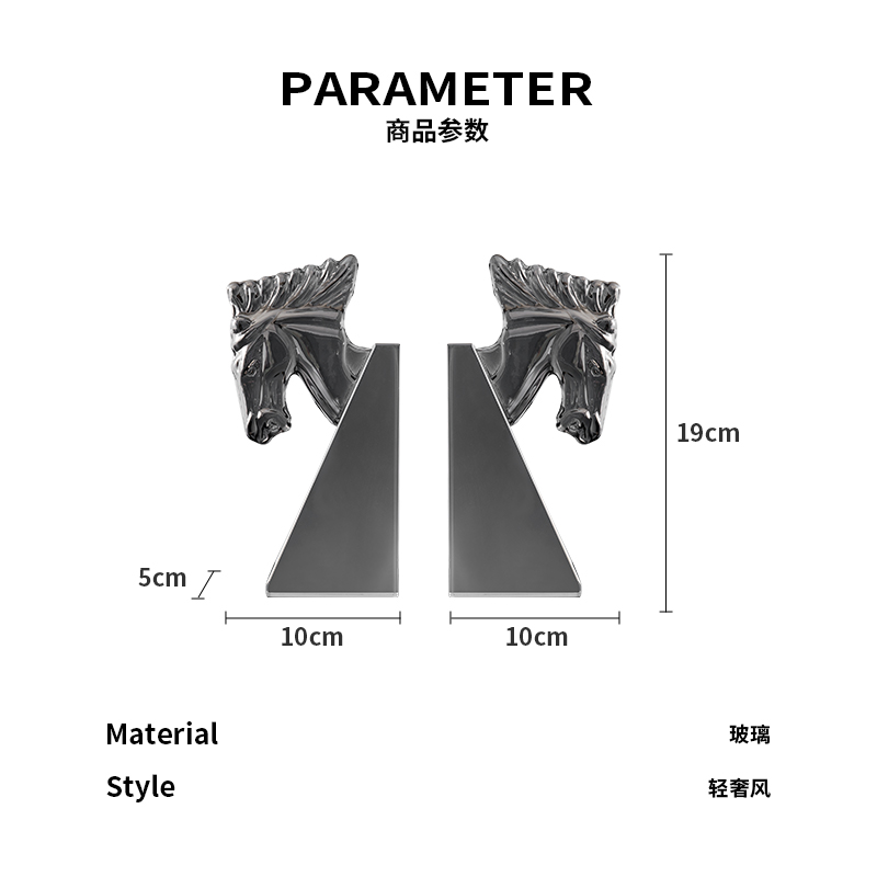 高级感玻璃水晶马头书档摆件透明冷灰色书靠客厅电视柜壁龛装饰品