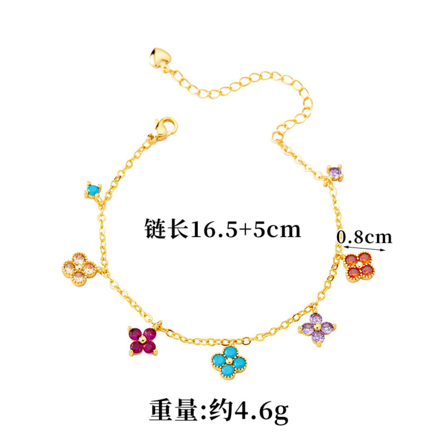 新款彩色镶锆四叶花朵项链女越南沙金高级感手链套装久不掉色饰品
