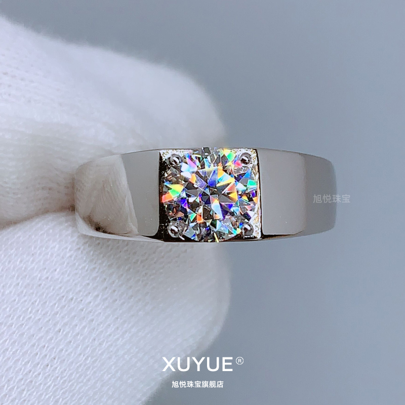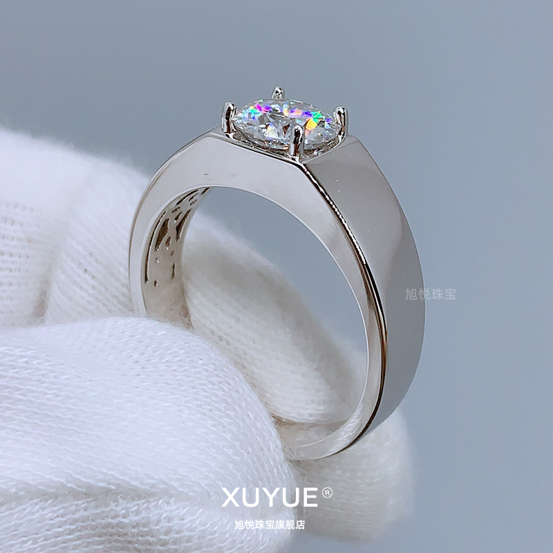 D色莫桑石钻戒经典一克拉925银男士戒指简约婚戒有证书正品高档
