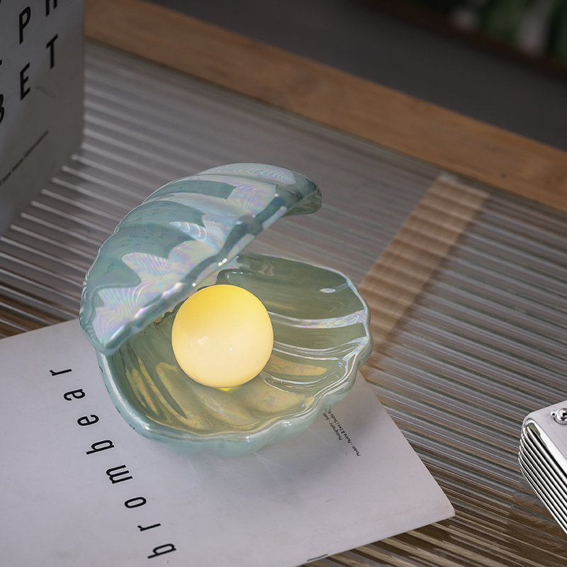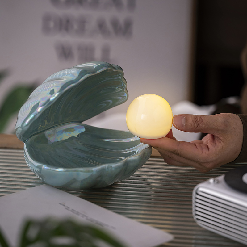 陶瓷贝壳小夜灯卧室床头灯珠光釉网红少女心梦幻珍珠创意桌面摆件