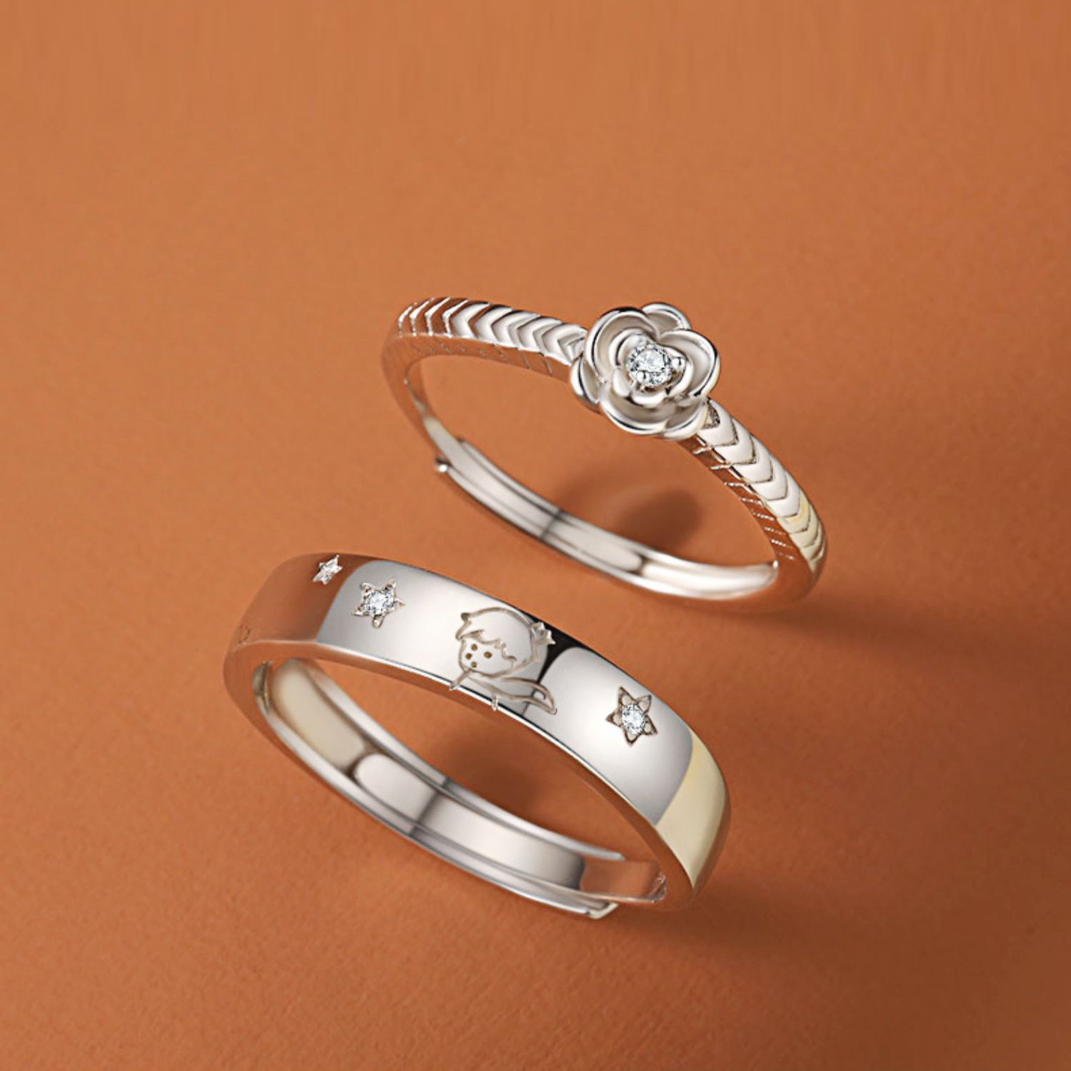 小王子与玫瑰花戒指镶钻情侣对戒定情信物情人节送男女朋友的礼物
