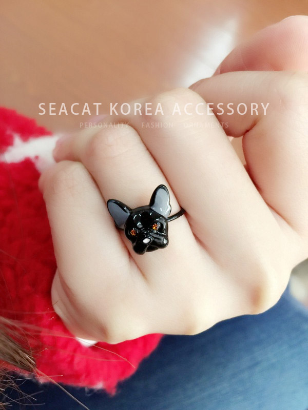 韩国东大门同款戒指可爱卡通猫咪小狗小动物法斗犬戒指环节日礼物