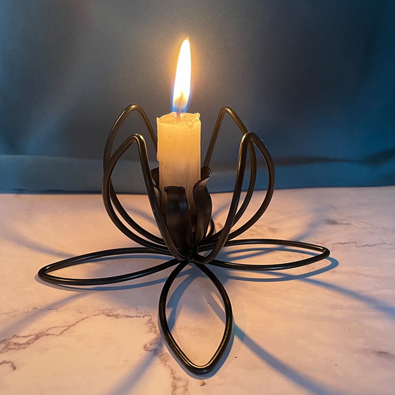 创意莲花烛台温柔时光铁艺摆件卧室客厅铁艺摆饰舞台道具定制