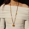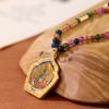 新中式天然碧玺长项链多巴胺彩色宝石串珠沙金唐卡吊坠秋冬毛衣链