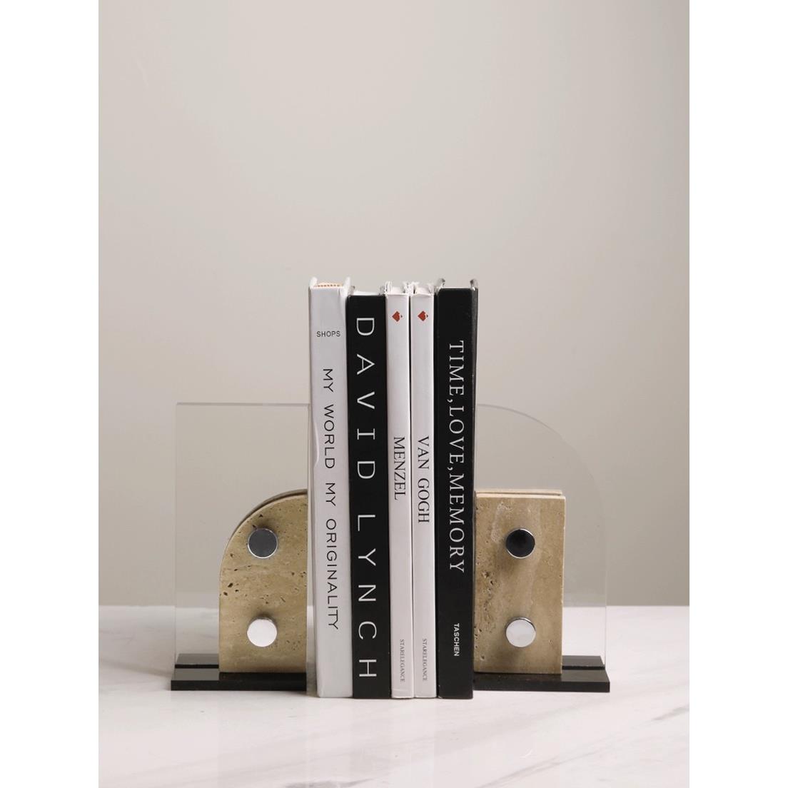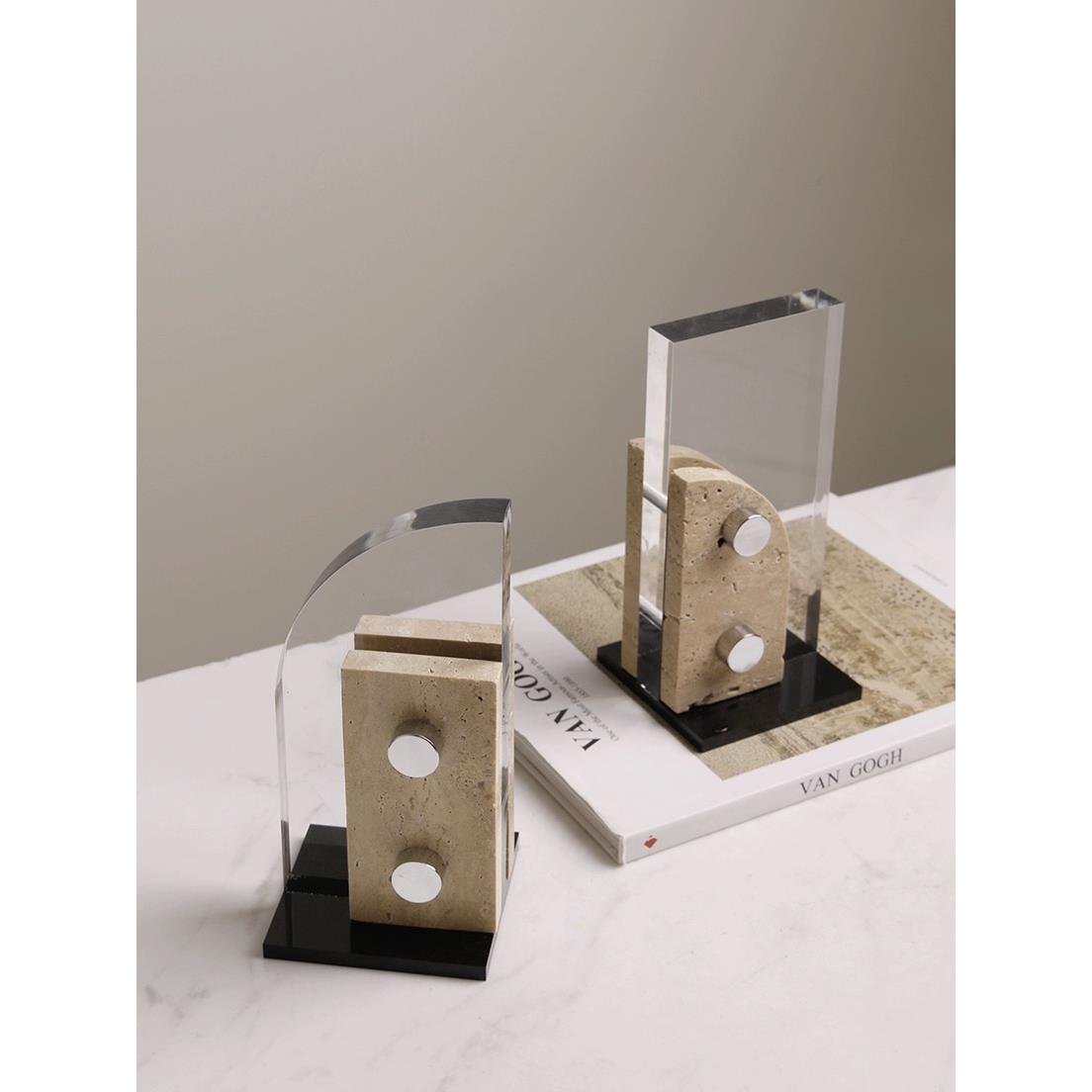 简约现代洞石书档书靠摆件创意几何样板间书房书柜杂志书架装饰品