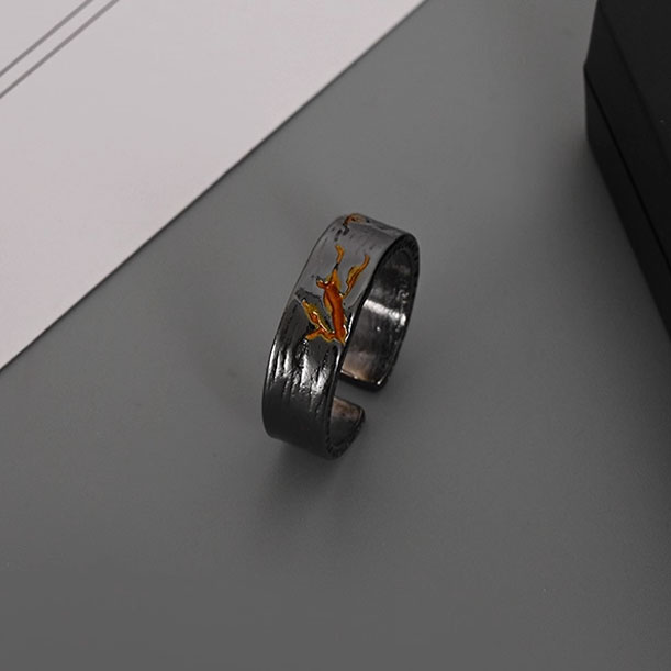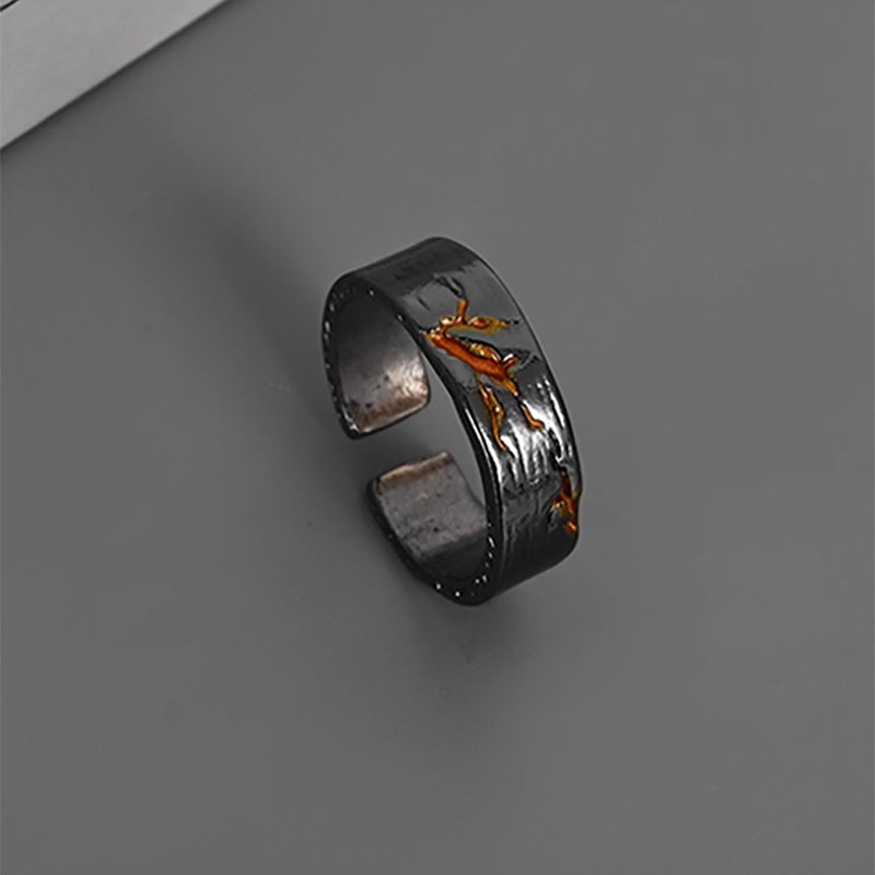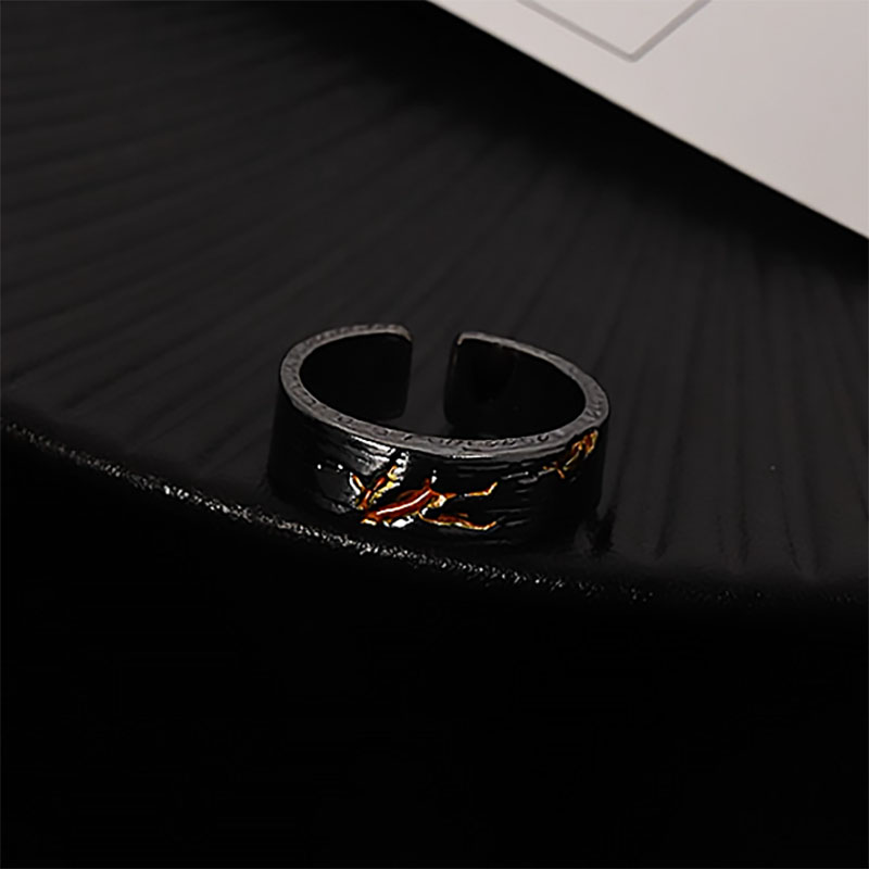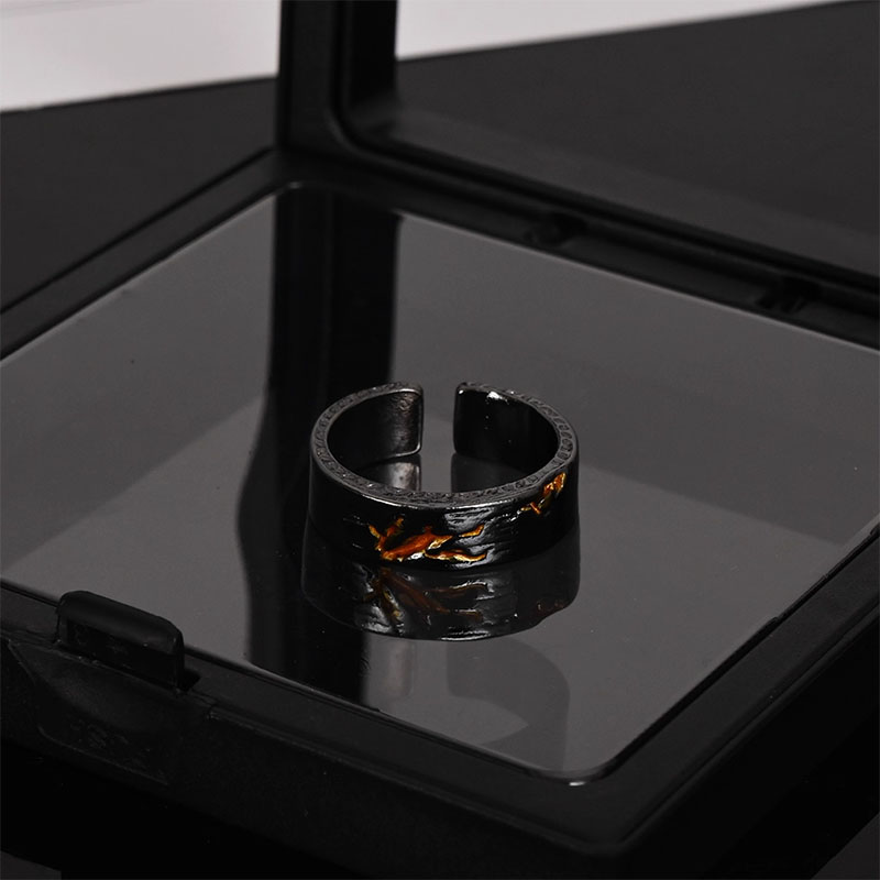 金山戒指黑色小众设计个性指环ins潮男轻奢高级感复古做旧食指戒