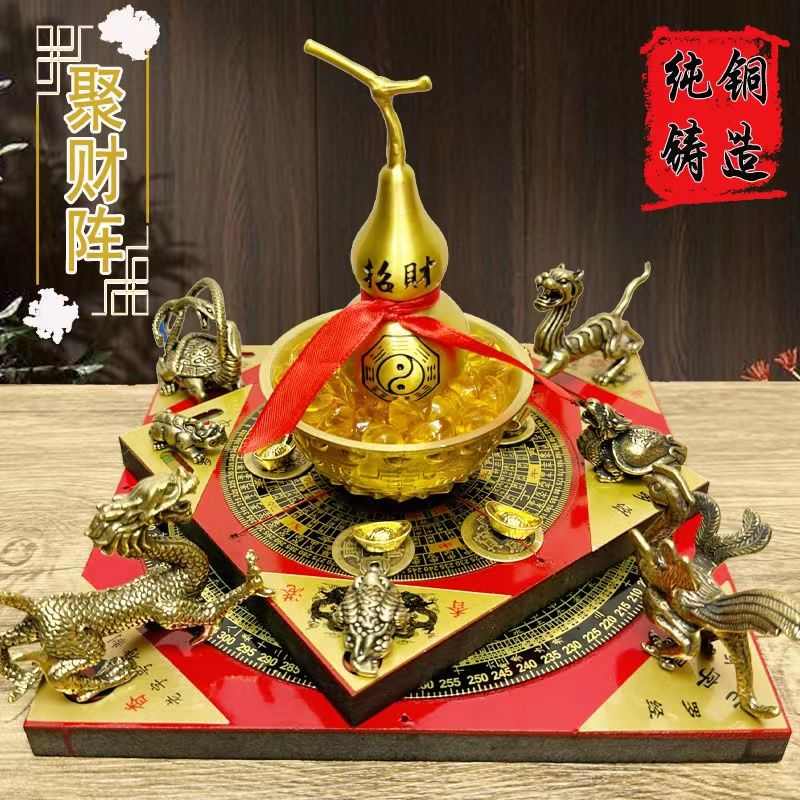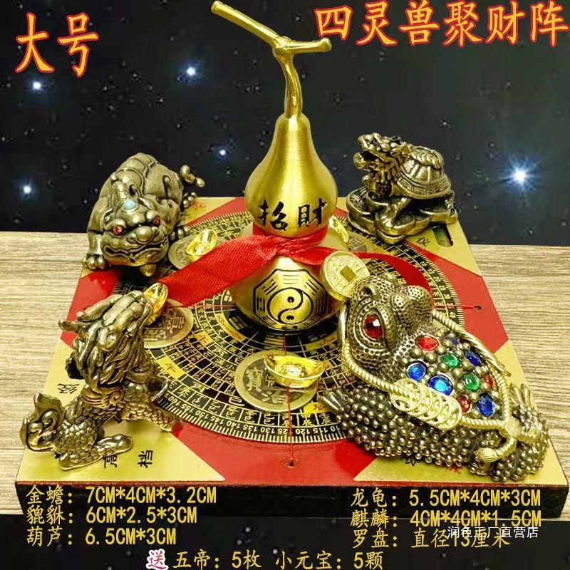 新款铜聚宝盆家用招.财金蟾摆件玄武麒麟办公桌摆件黄铜貔貅葫芦