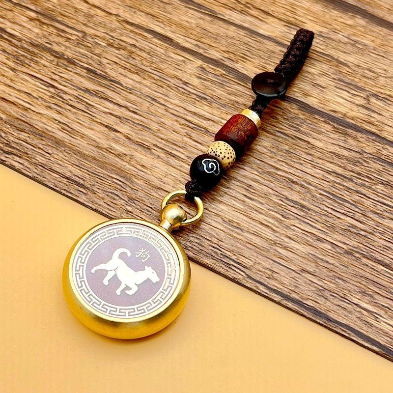 本命年钥匙扣黄铜朱砂手把件招财进宝汽车钥匙链挂件吊坠