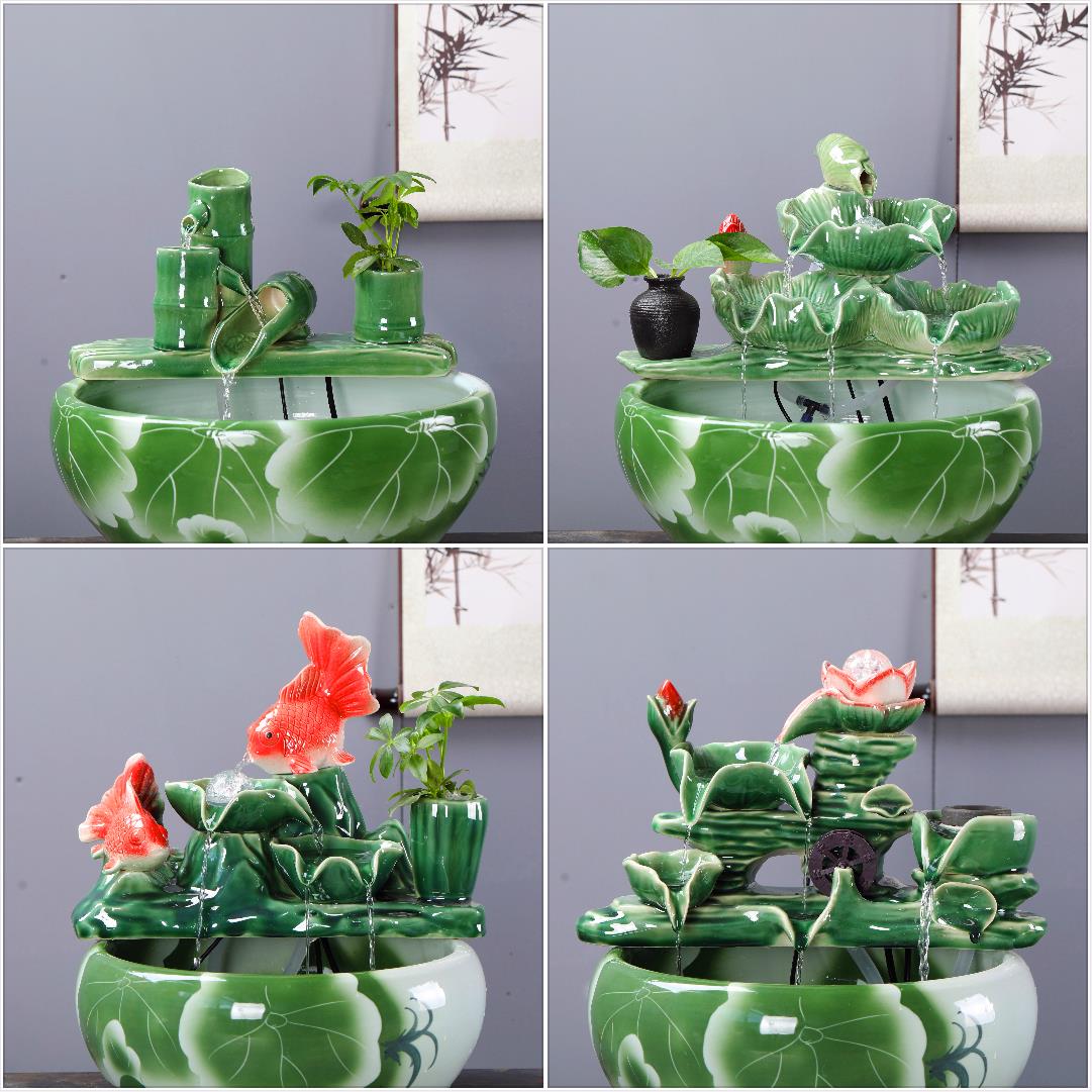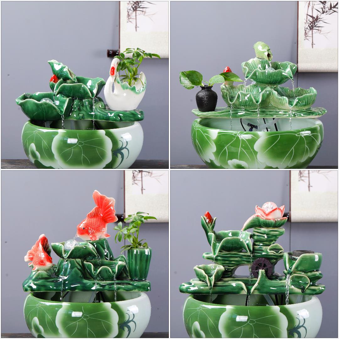 自动流水鱼缸摆件鱼盆喷泉瀑布室内家用招财陶瓷循环水过滤流水器