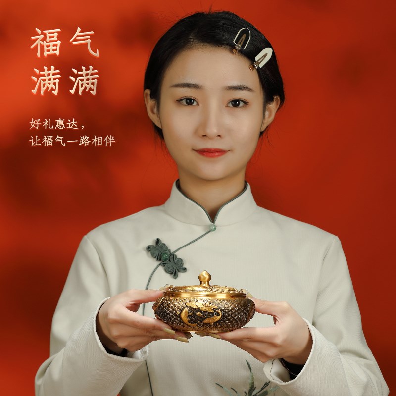 黄铜工艺品锦鲤烟灰缸带盖防风客厅茶桌装饰品办公桌面摆件