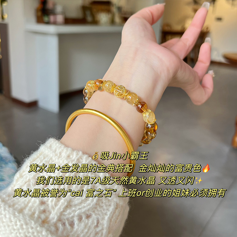 【吸金小霸王】天然黄水晶手串女款招财转运金发晶女友礼物手链女