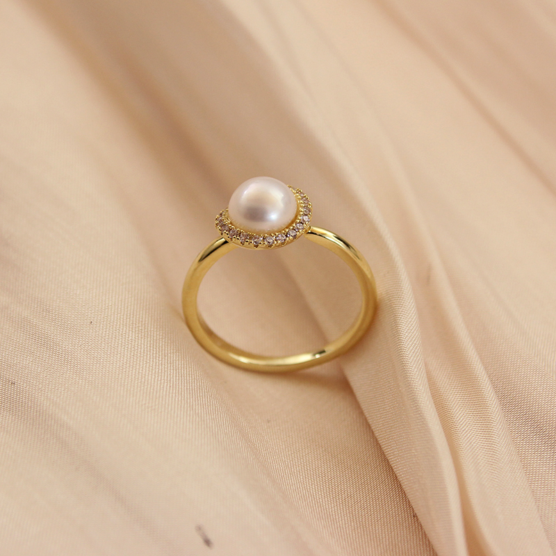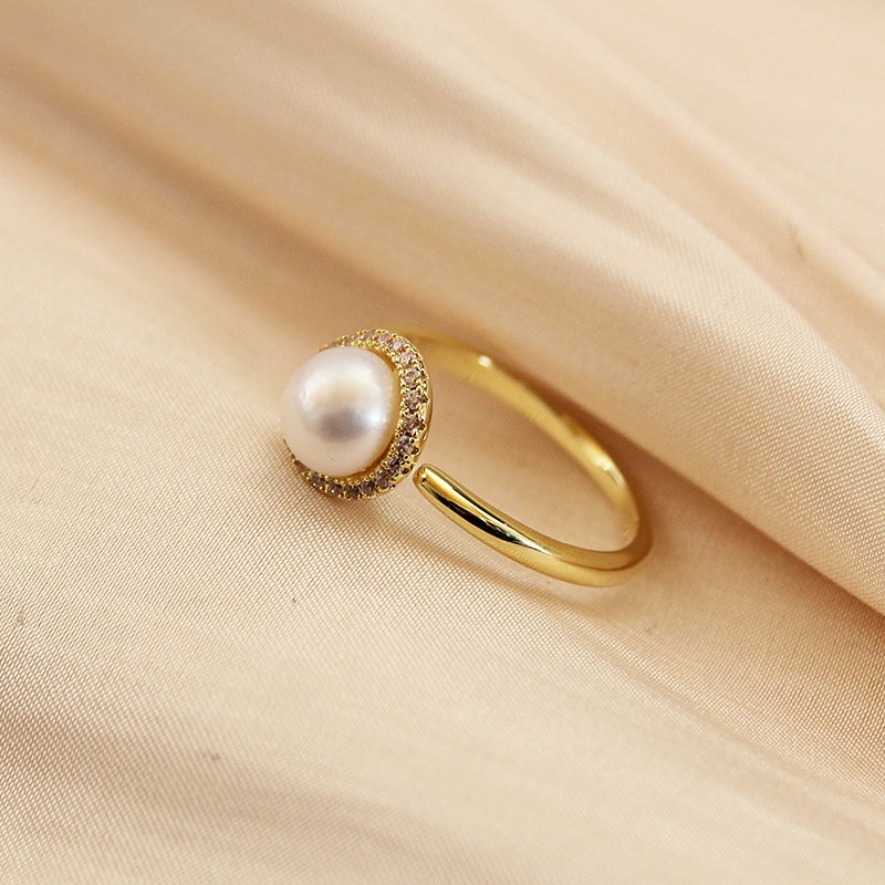 淡水珍珠戒指新款女轻奢微镶钻气质简约百搭无名指中指食指环饰品