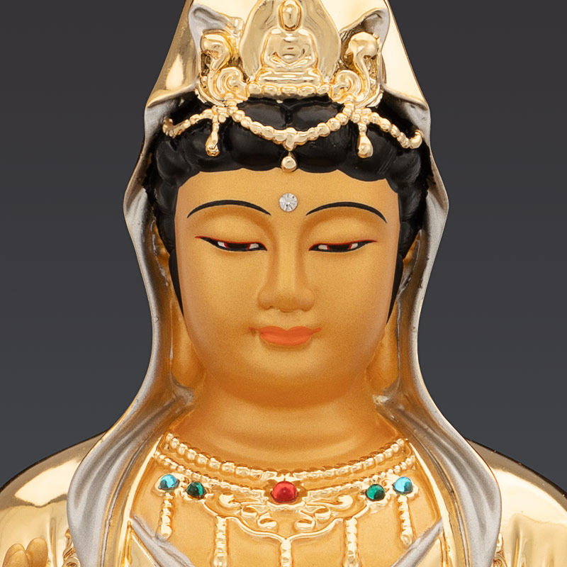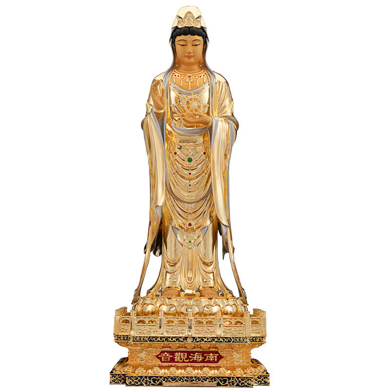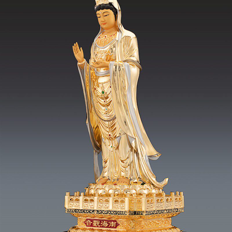 速发鎏金纯铜南海观音佛轮如意像家用南海观世铜菩萨观音菩萨音像