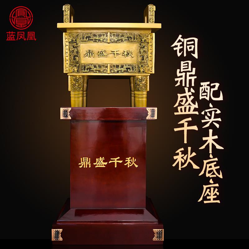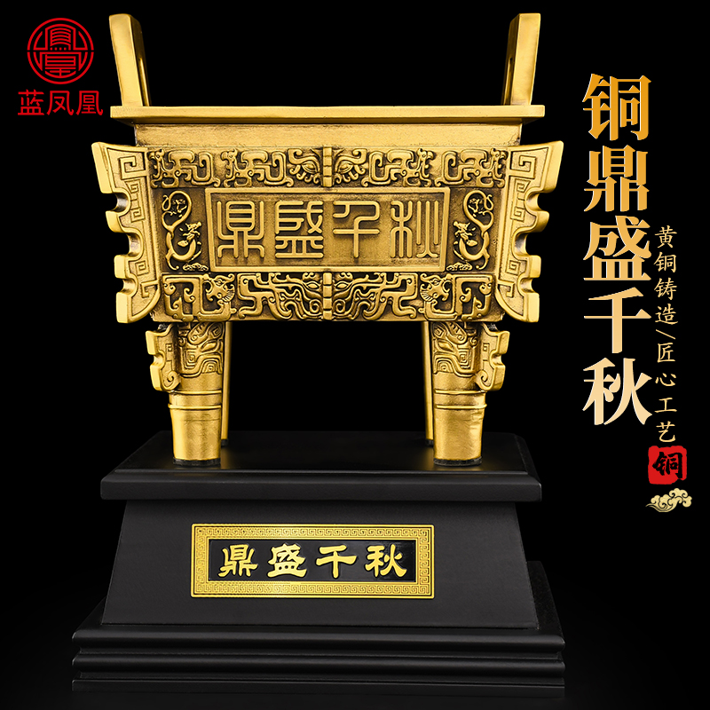 黄铜鼎盛千秋摆件铜鼎四方鼎办公室公司开业礼品落地鼎定制大号