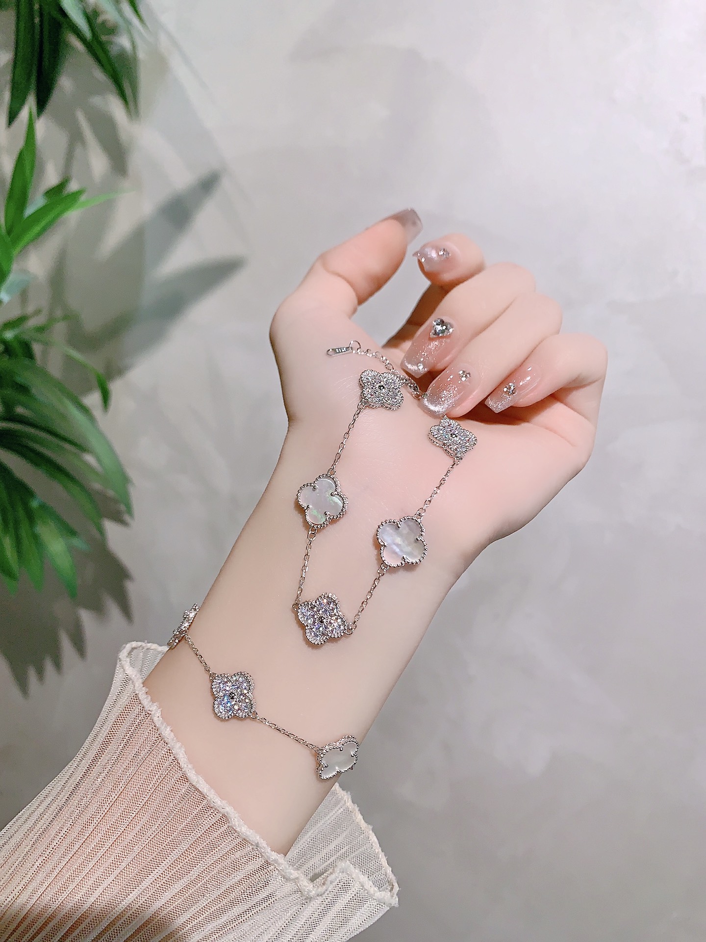 水贝银饰足银925四叶草五花手链女款纯银手链送女友闺蜜生日礼物