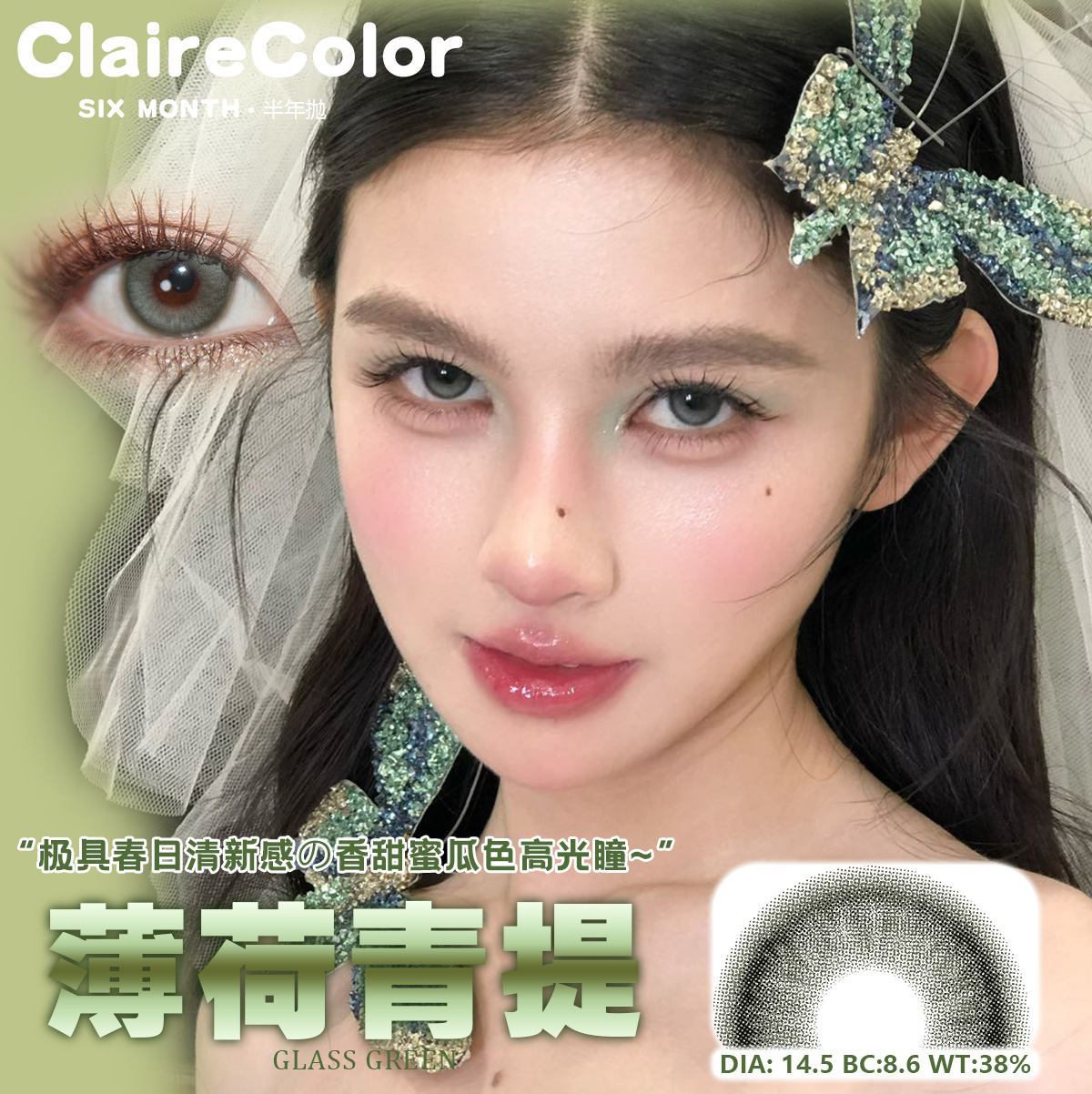 CLAIRE COLOR高光巧美瞳半年抛大直径韩产美瞳薄荷青提2片装