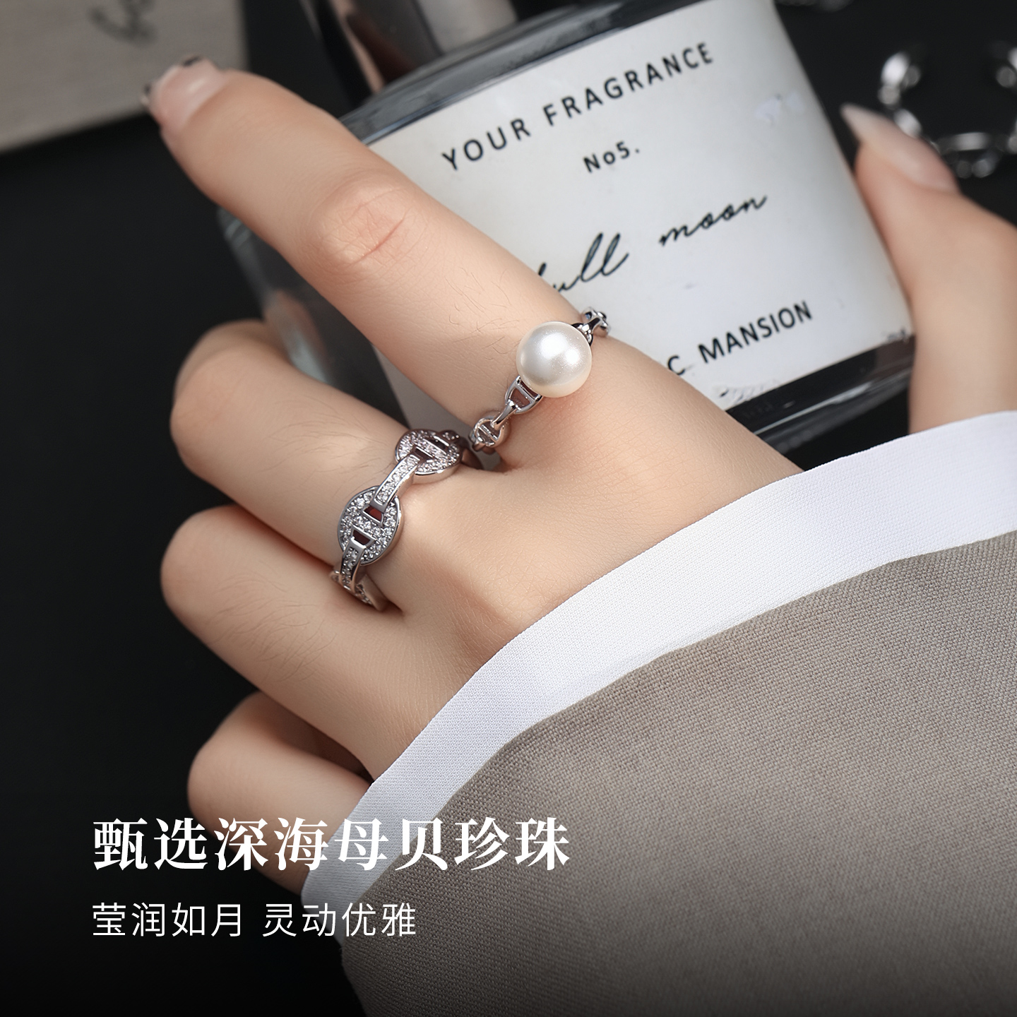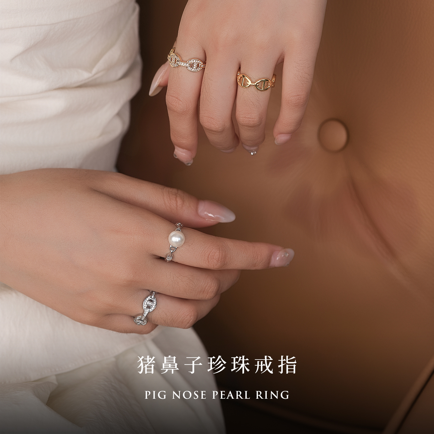 猪鼻子珍珠戒指纯银巨好看的戒指银饰戒指女小众设计开口戒指