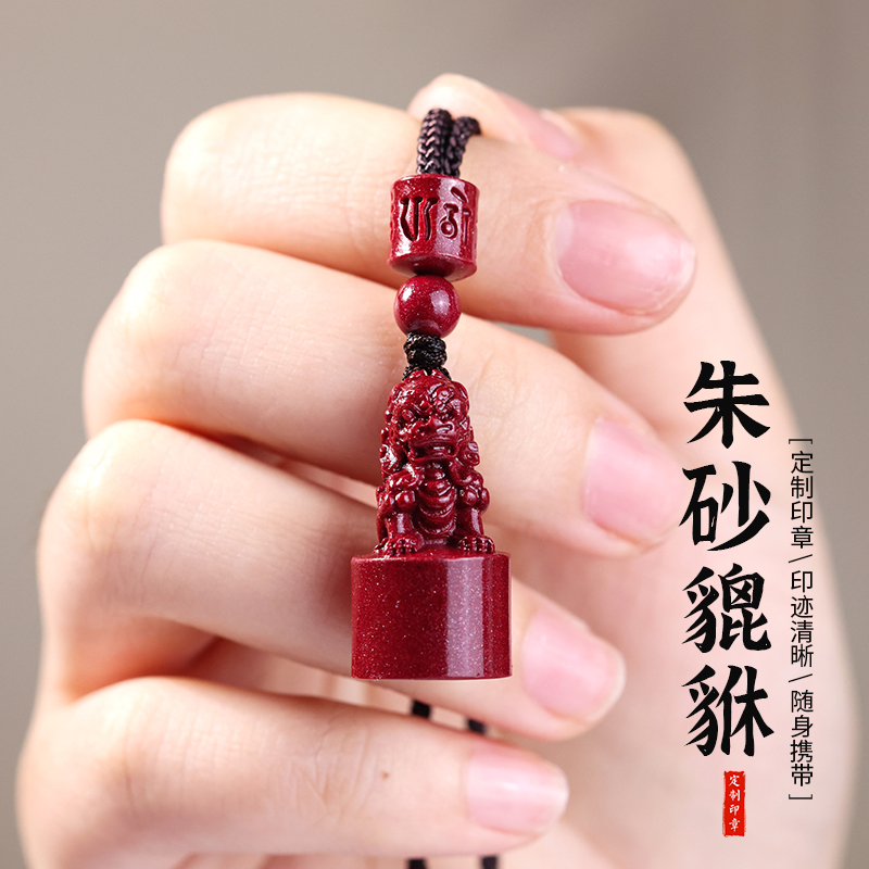 天然真品朱砂貔貅印章吊坠定制定刻名字个人姓名挂件男女项链刻字