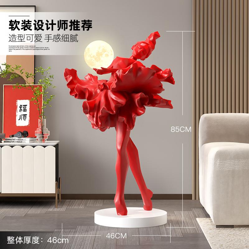 高级感红色芭蕾女孩艺术落地摆件客厅氛围灯装饰品新婚结婚礼