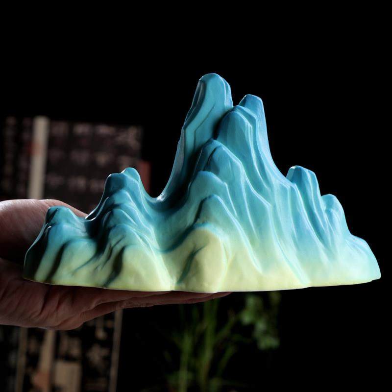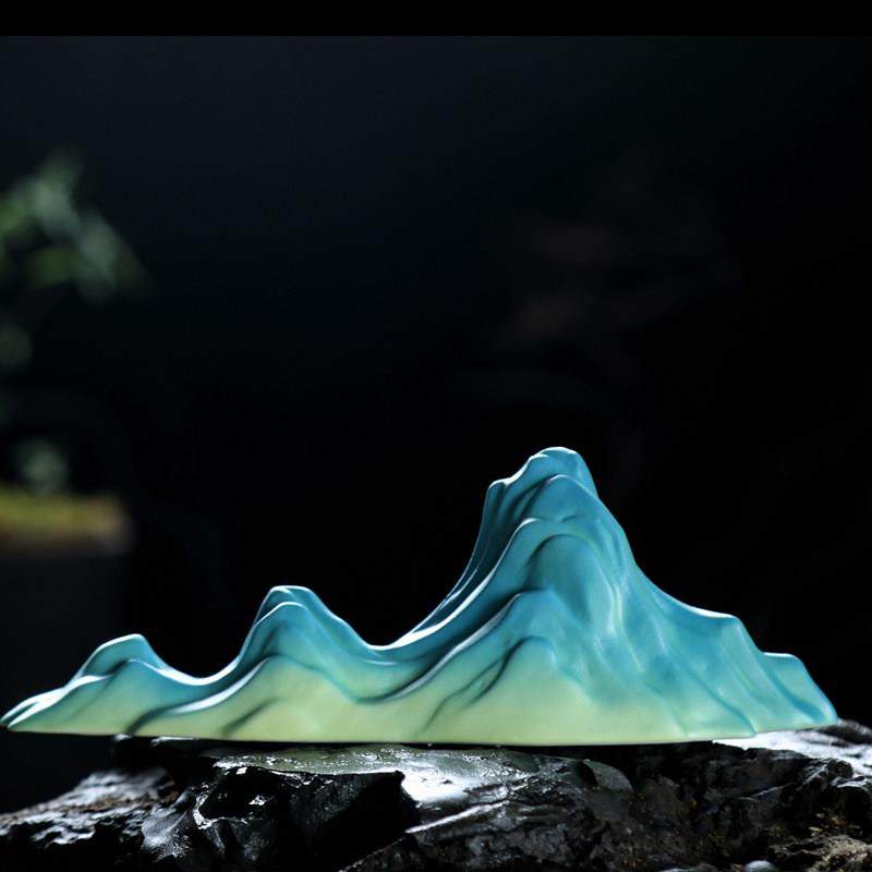 陶瓷千里江山绿色假山家居水景摆件鱼缸造景禅宗新中国风茶几室装