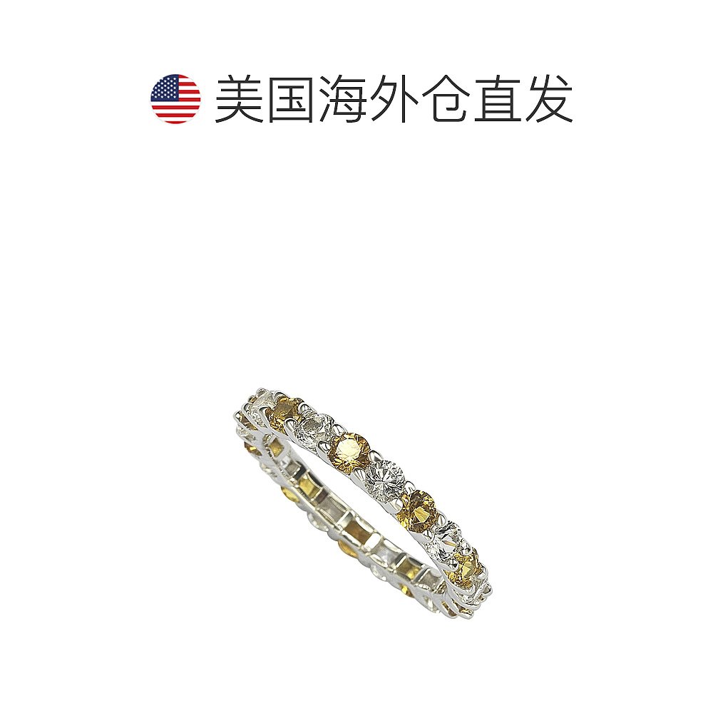 自营 Suzy Levian 纯银黄色和白色蓝宝石和钻石装饰永恒戒指 - 黄