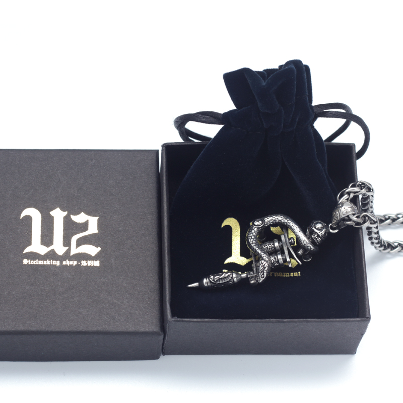 复古蛇型纹身机项链男士个性嘻哈潮人吊坠百搭钛钢毛衣链单身夜店