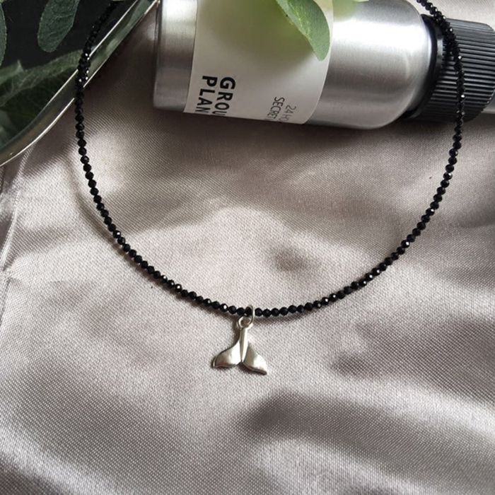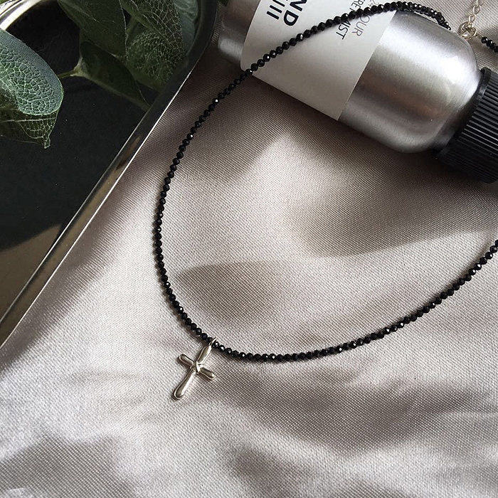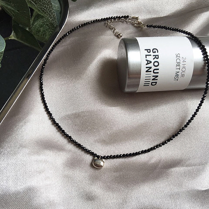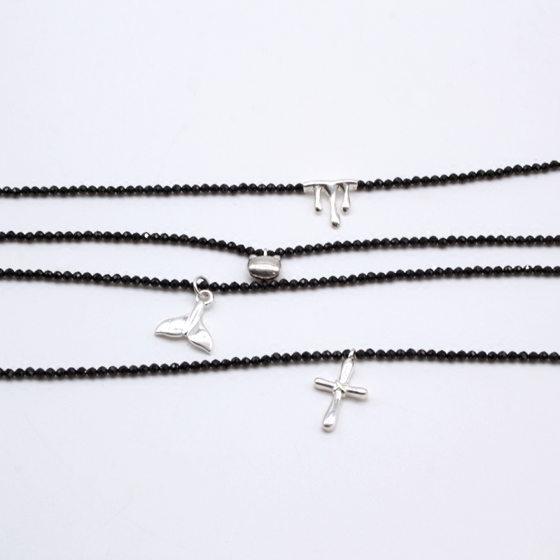 choker项圈细款女锁骨链925银musa天然黑尖晶石项圈礼物细项圈女