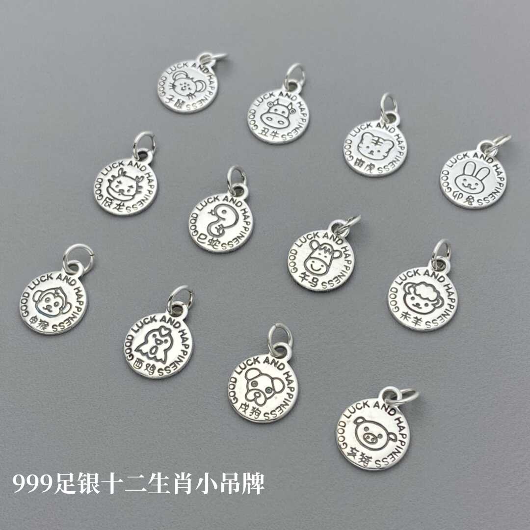 S925纯银 十二生肖吊坠挂件 复古做旧平安喜乐圆牌 手工编织首饰