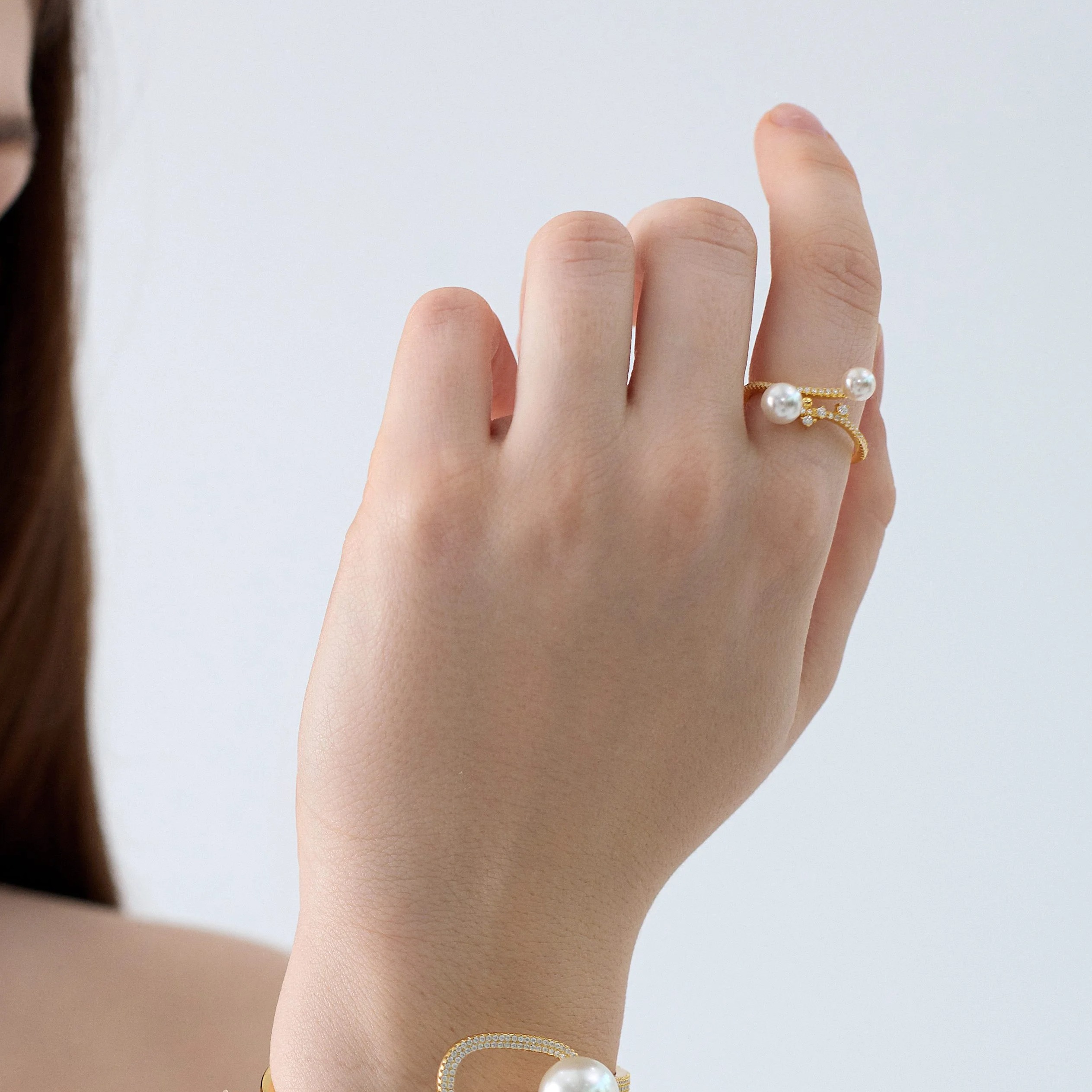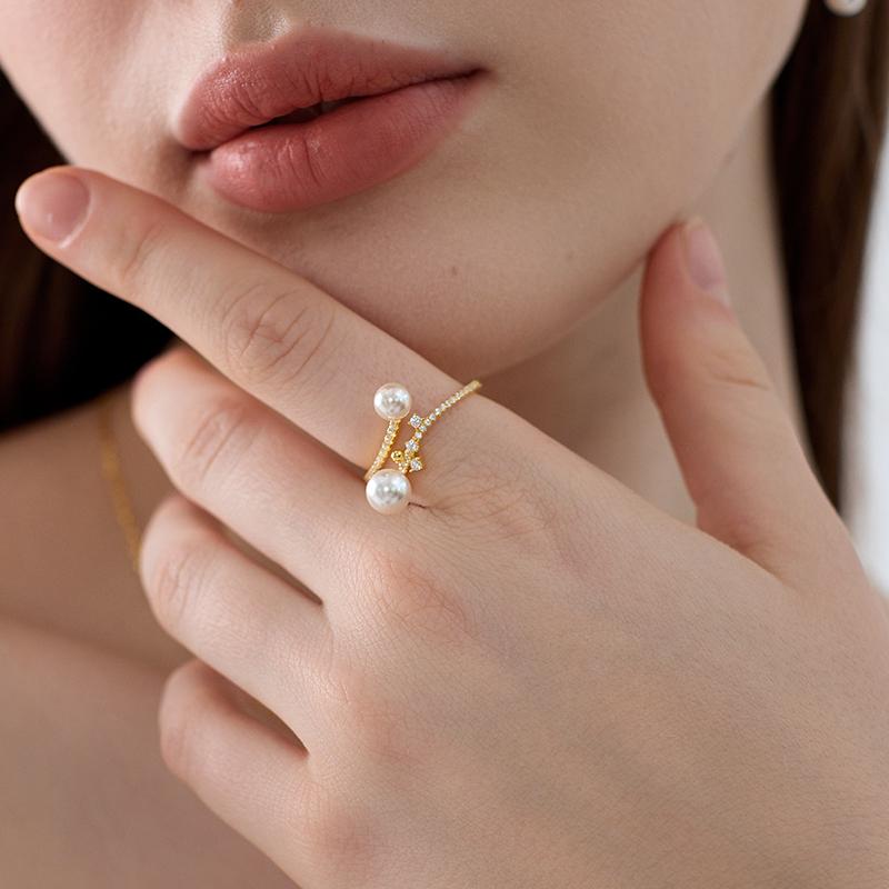 GTM珠宝线条珍珠戒指纯银指环轻奢高级感饰品配饰首饰女生日礼物