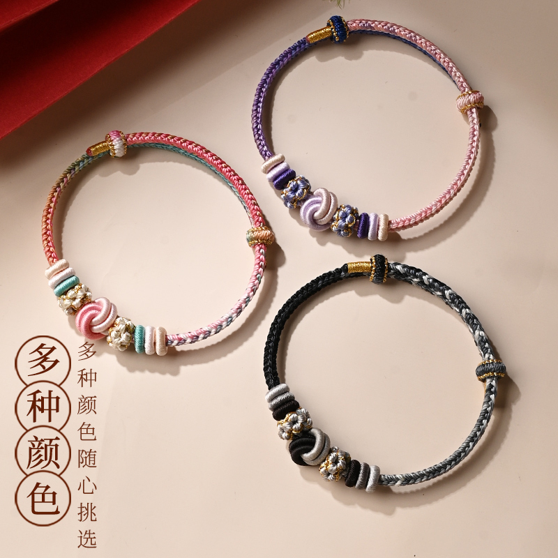 手工编织diy手绳桃花结可穿黄金珠酒窝结手链女八股手绳可调节