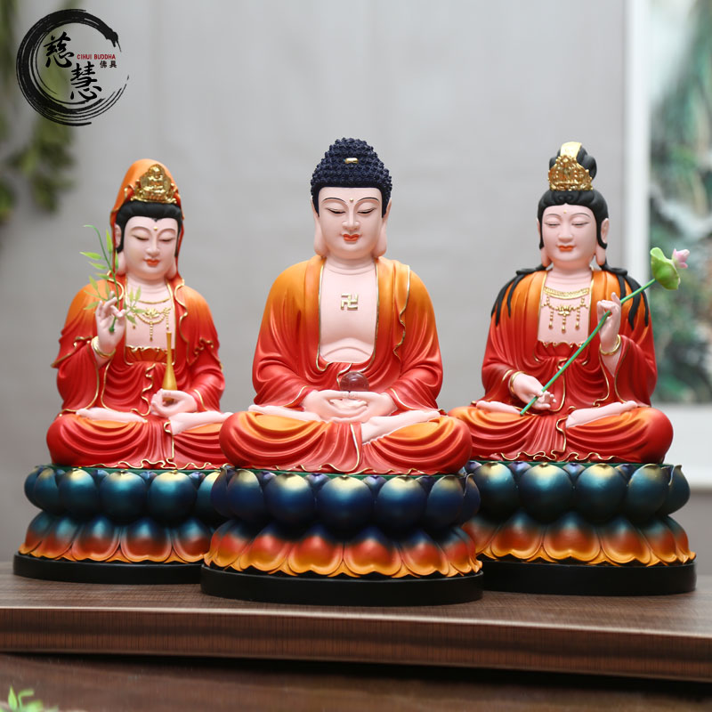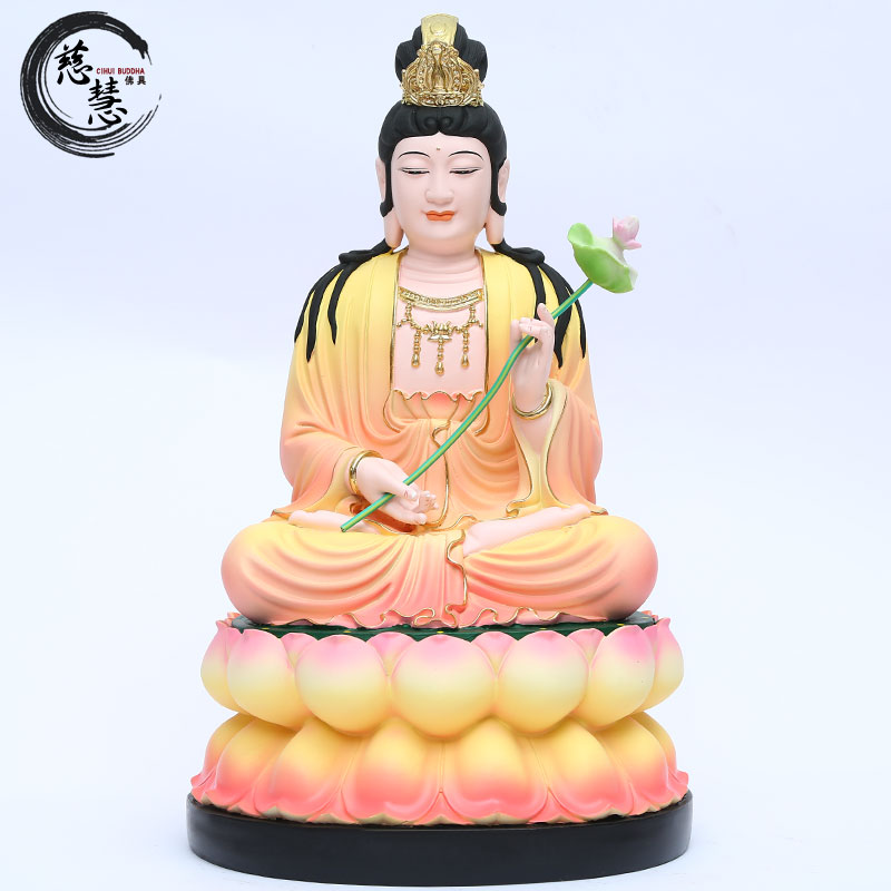寺庙树脂佛像 西方三圣供奉 家用古彩大势至 粉彩大势至菩萨