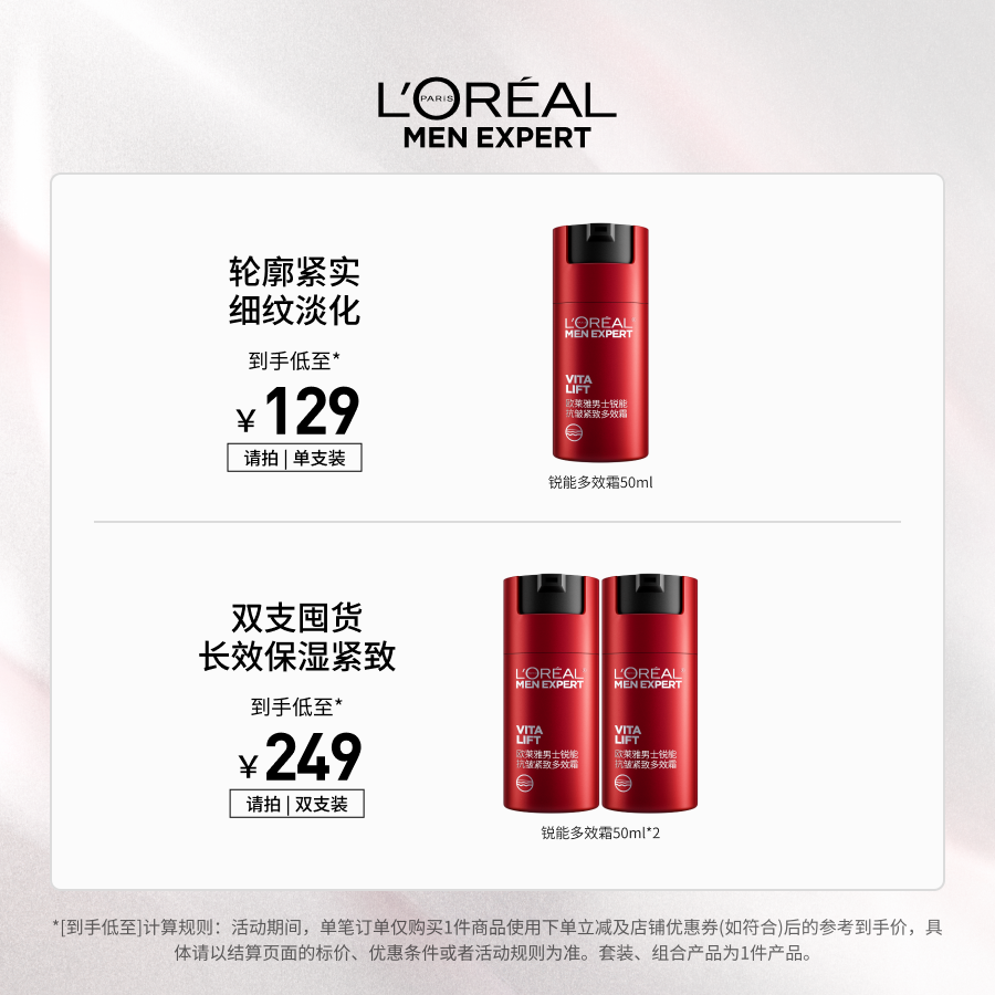 欧莱雅男士锐能多效霜抗皱紧致提亮保湿减少皱纹男面霜官方正品