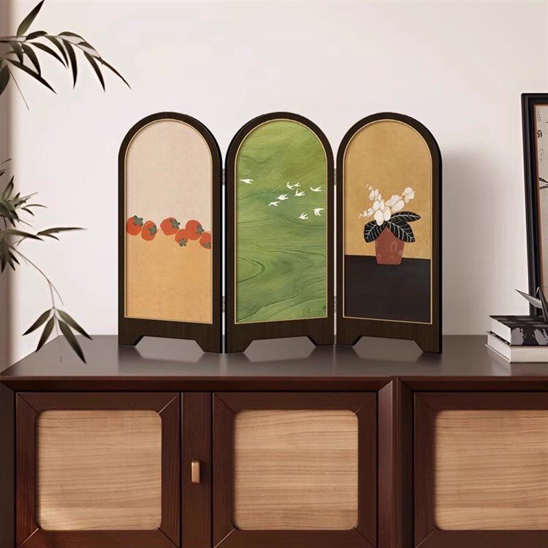 新中式绿色飞鸟屏风桌面摆件玄关柜茶桌家居装饰品客厅摆画礼品