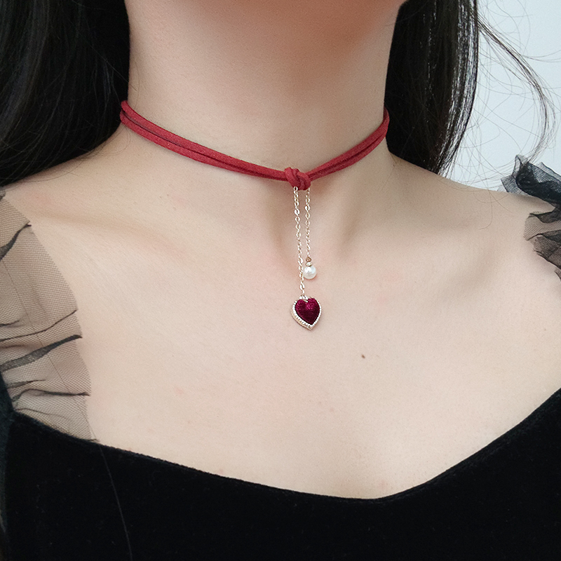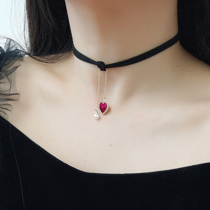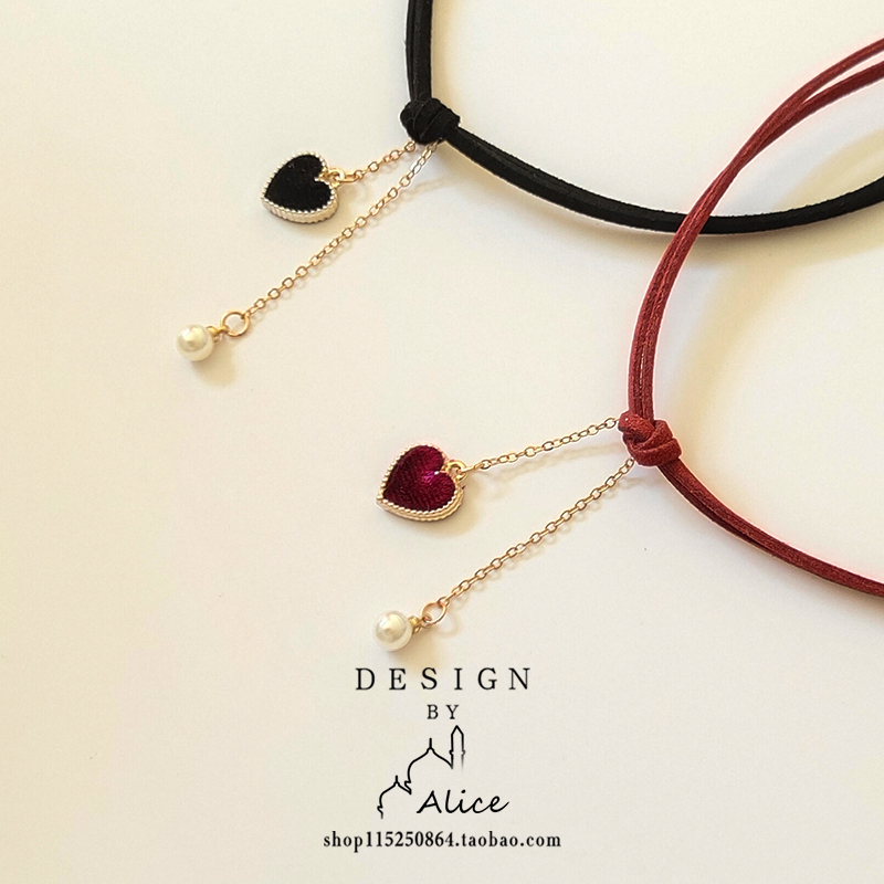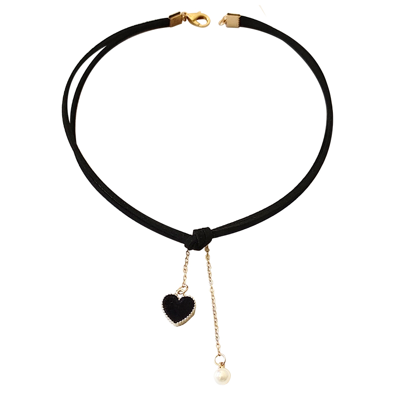 ins网红爱心时尚choker项圈女黑色皮绳脖子饰品颈链chocker珍珠