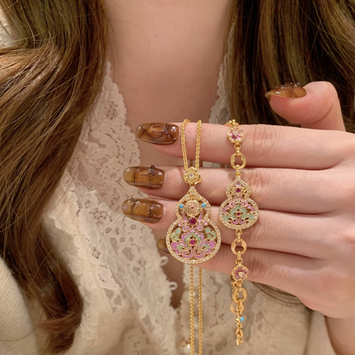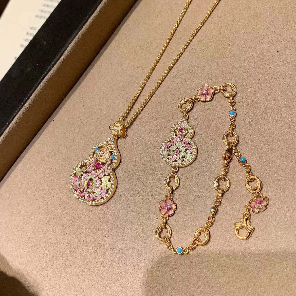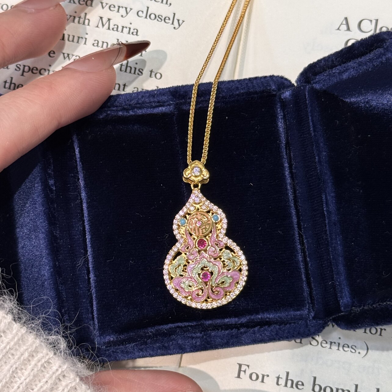 2026新款福禄葫芦吊坠项链女款气质古法沙金黄色镂空锁骨毛衣链